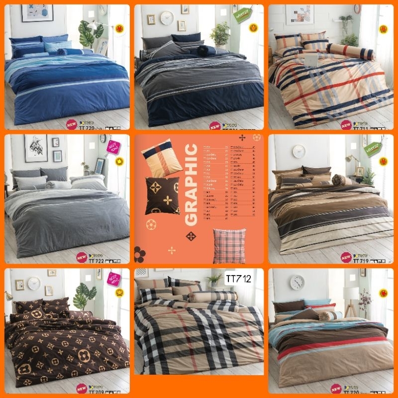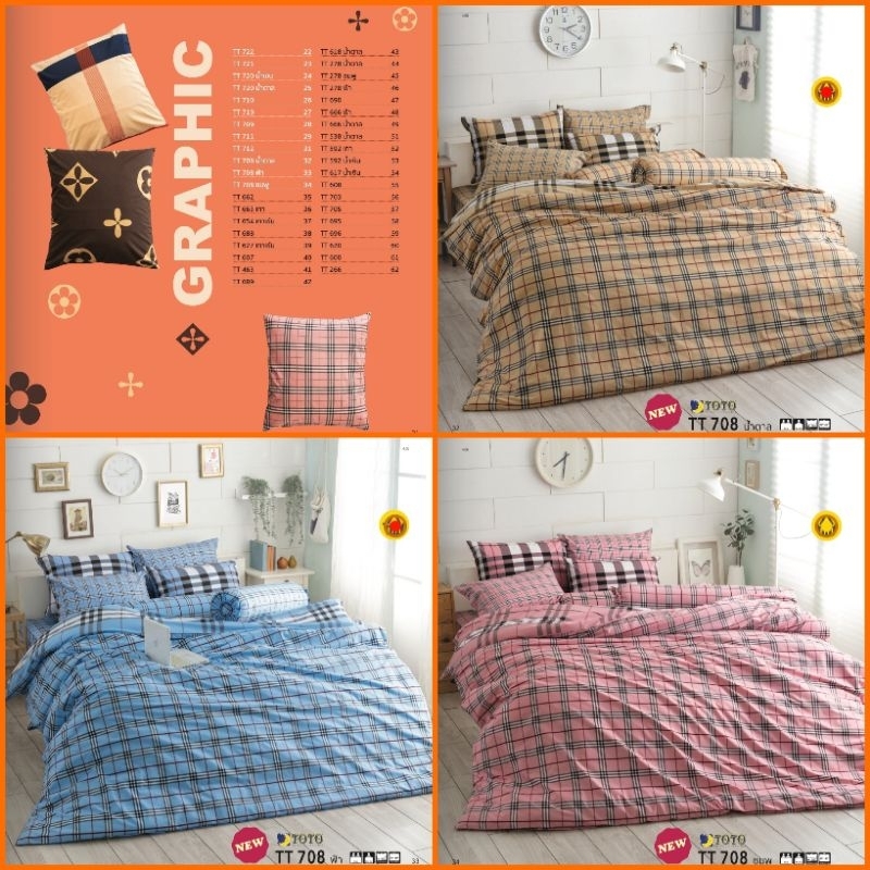 ผ้าปูที่นอนTOTO (ไม่รวมผ้านวม) ลายตาราง/กราฟฟิก (Ver3) ขนาด 3.5ฟุต, 5ฟุต, 6ฟุต