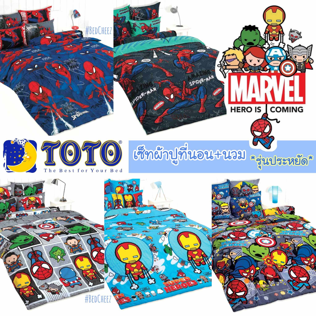 🔥โค้ดลดหน้าร้าน🔥ผ้าปูที่นอน + ผ้านวม 💲รุ่นประหยัด💲Kawaii Marvel by TOTO ฮีโร่ Super Hero มาร์เวล Spiderman สไปเดอร์แมน