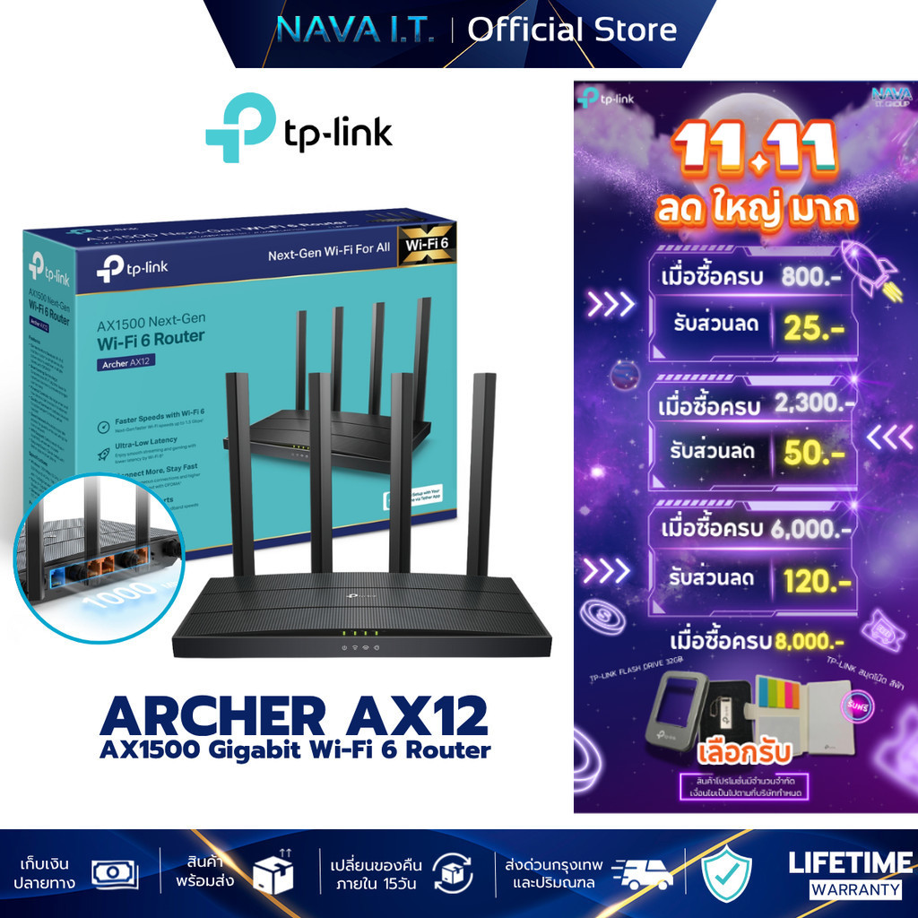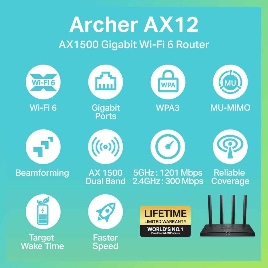 TP-LINK ARCHER AX12 AX1500 GIGABIT WI-FI6 ROUTER