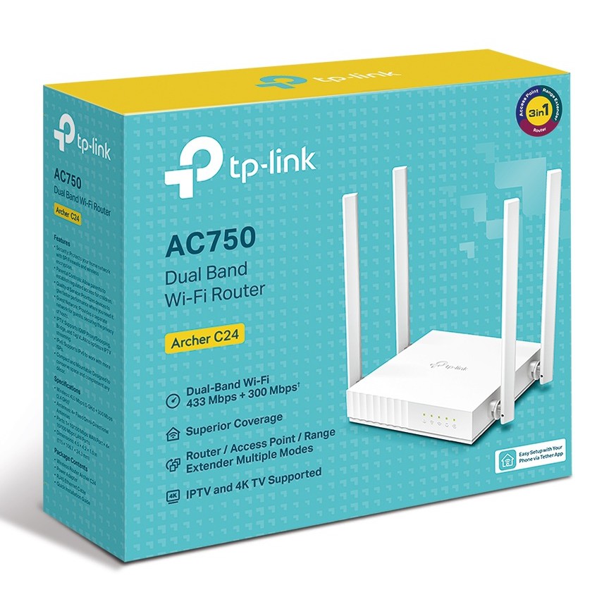 เร้าเตอร์ TP-LINK (Archer C24) AC750 Dual-Band Wi-Fi Router 2.4 GHz / 5 GHz เหมาะสำหรับการสตรีมมิ่งวิดีโอ