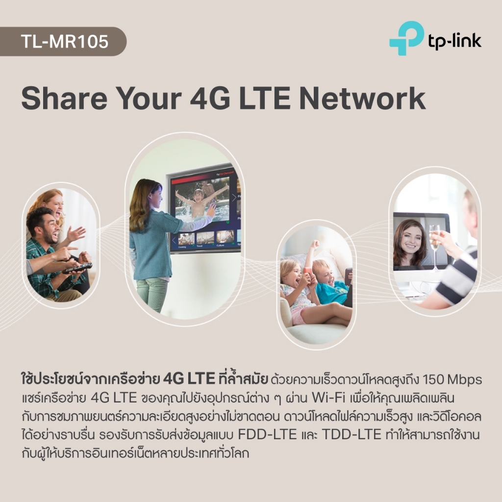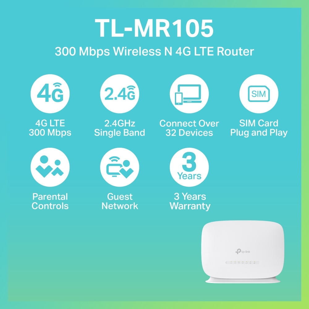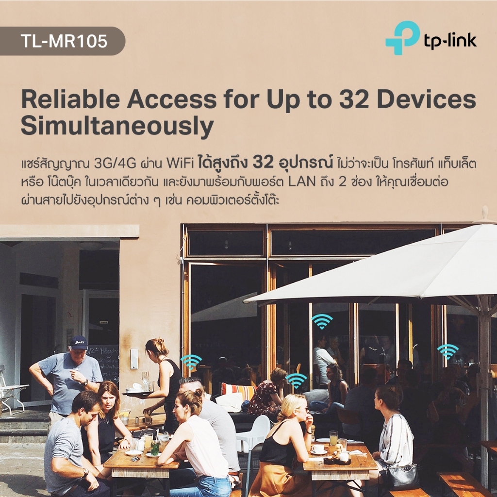 TP-LINK เราเตอร์ใส่ซิม 4G เสียบซิมใช้ได้เลย แชร์ไวไฟได้สูงสุด 32 อุปกรณ์ รุ่น TL-MR105