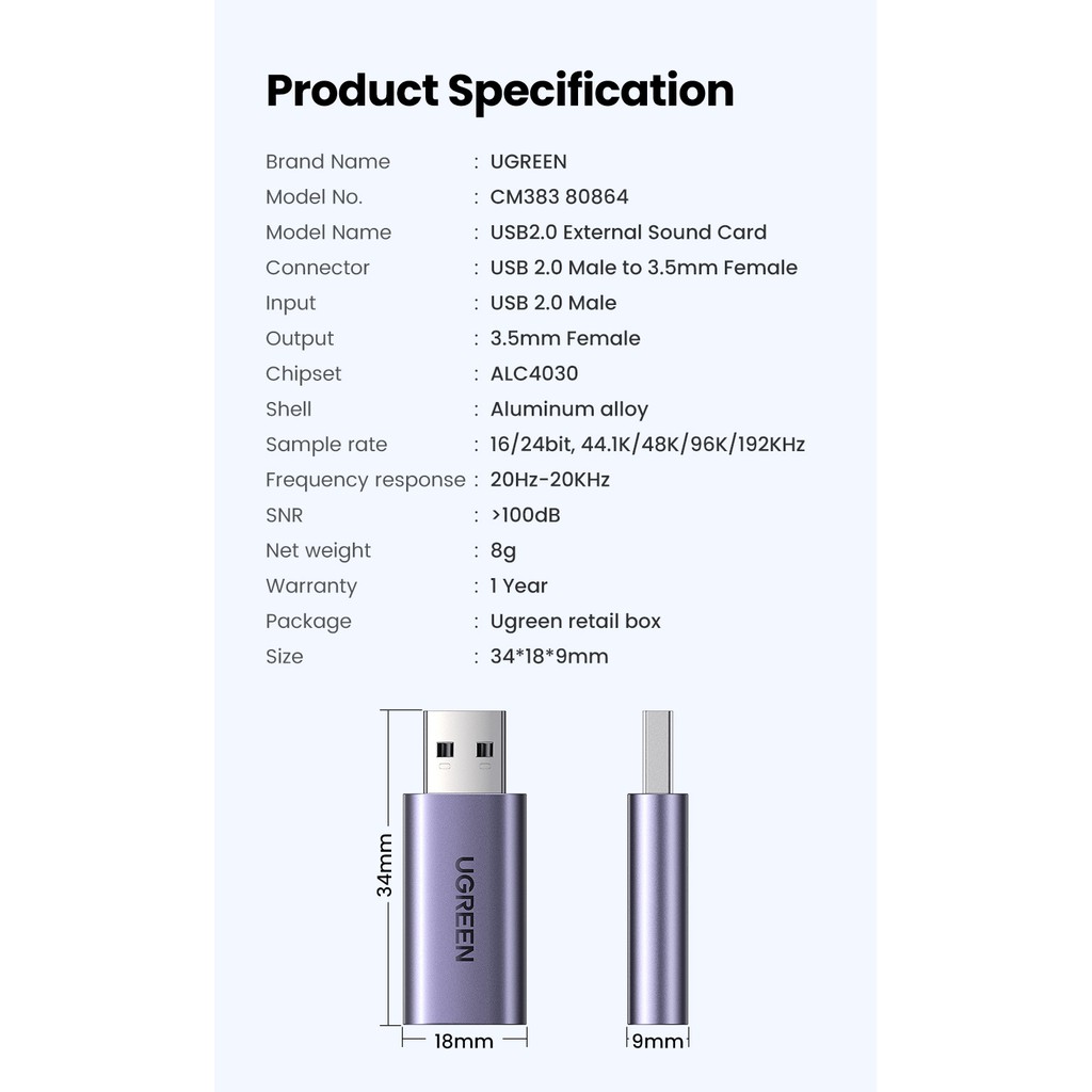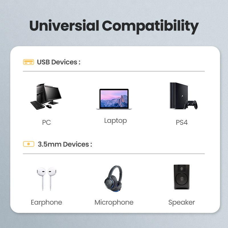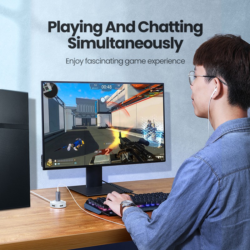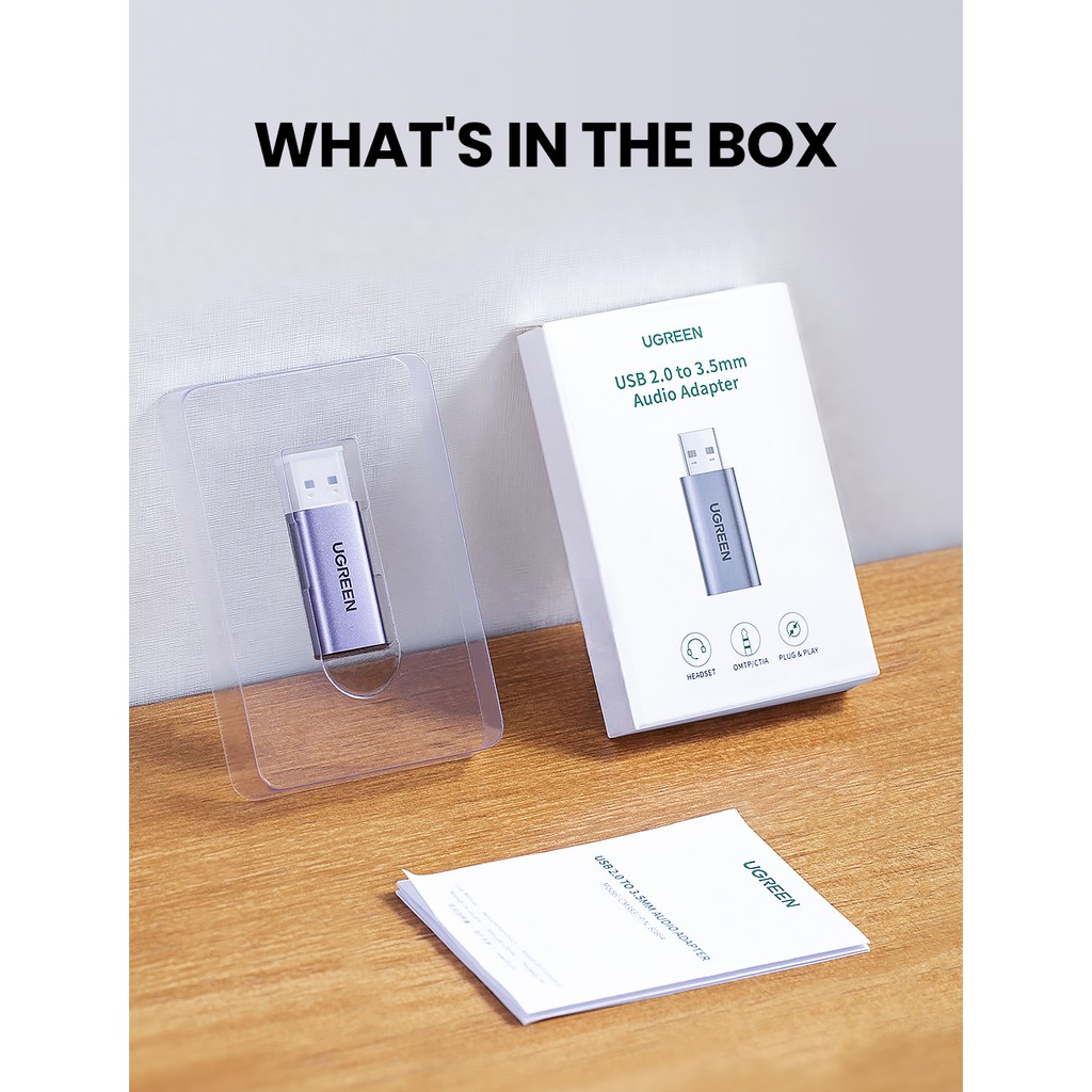 UGREEN 2 in 1 อะแดปเตอร์การ์ดเสียงภายนอก แบบ USB