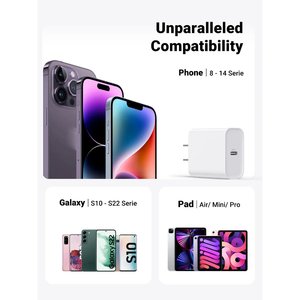 Howxuan By UGREEN Mini USB C Charger PD 20W Fast Charger Wall Charger Power Adapter
