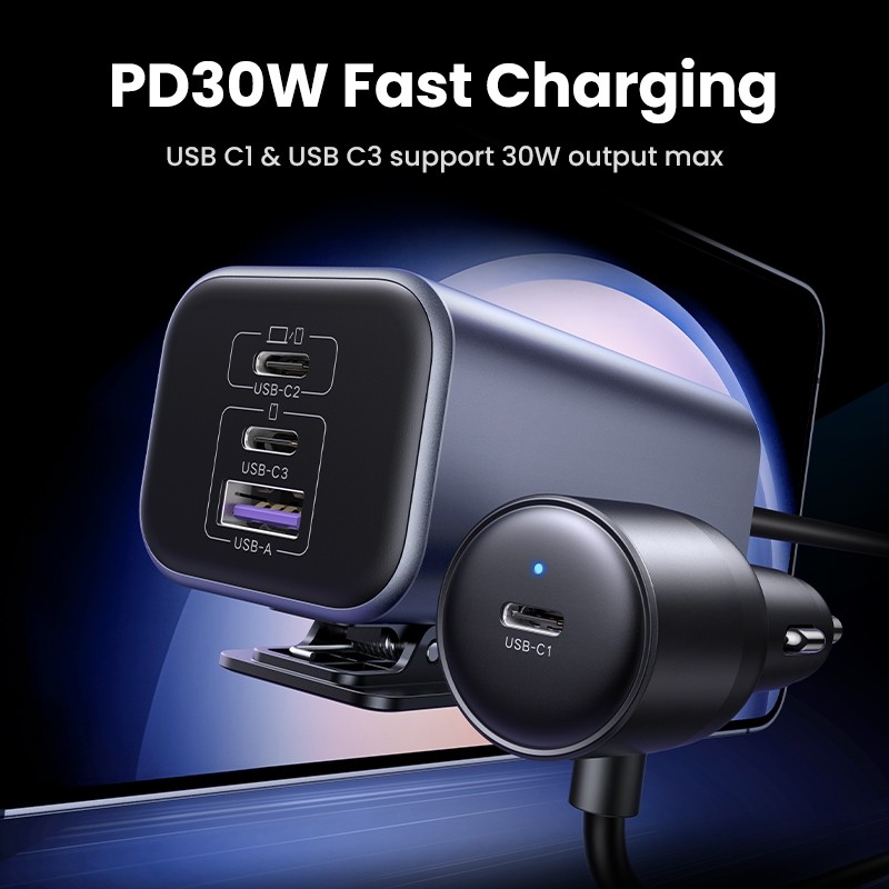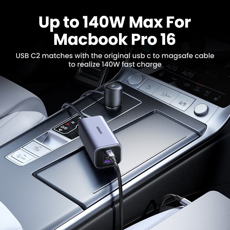 Ugreen Car Charger GaN 150W สูงสุด 4 พอร์ต PD3.1 140W Fast Charging Car Charger สําหรับโทรศัพท์