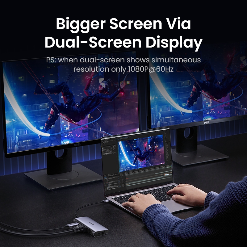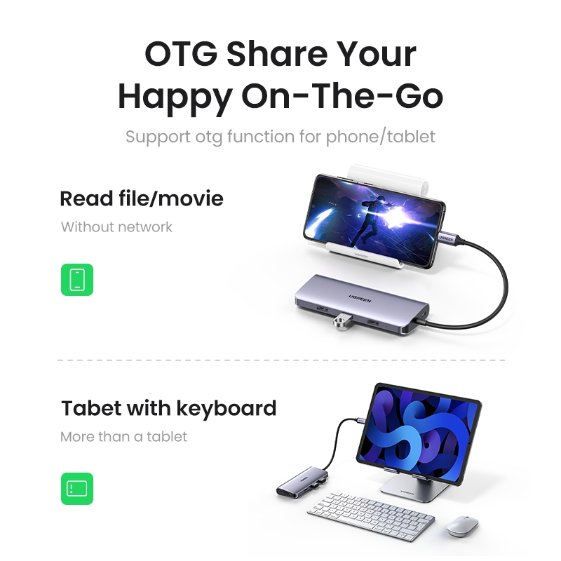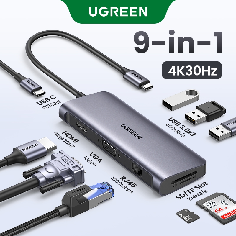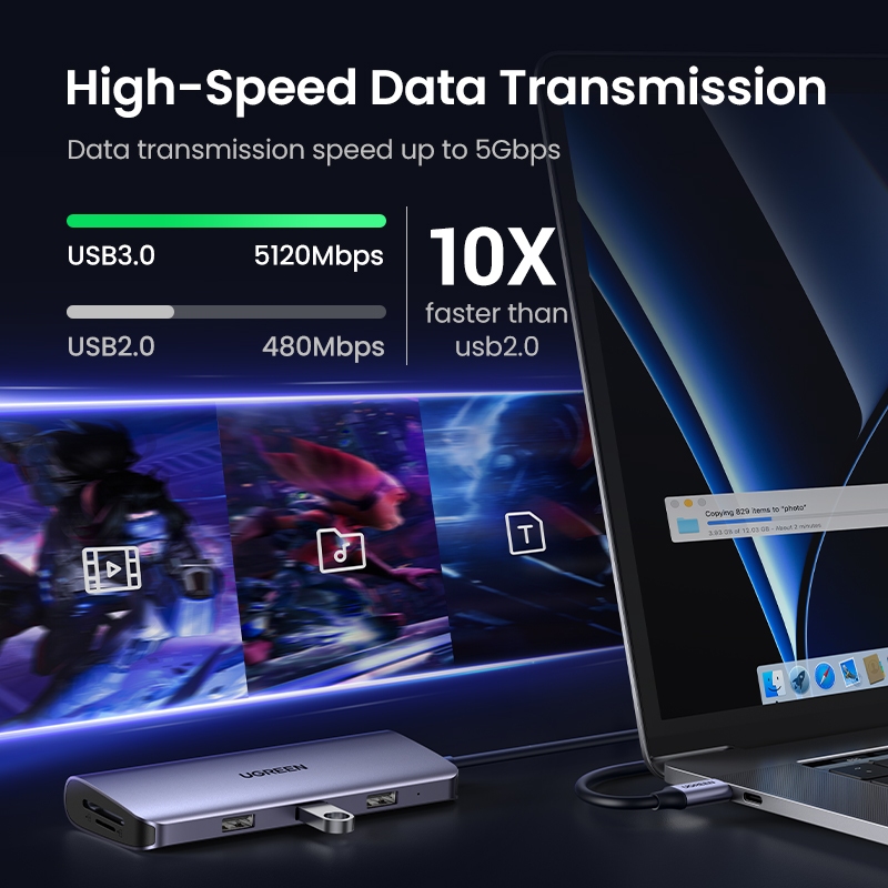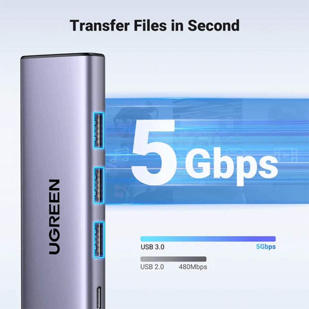 UGreen 5-in-1 USB-C HUB 4K HDMI 100W PD USB3.0 5Gbps หลายอะแดปเตอร์สําหรับ Mac แล็ปท็อป PC