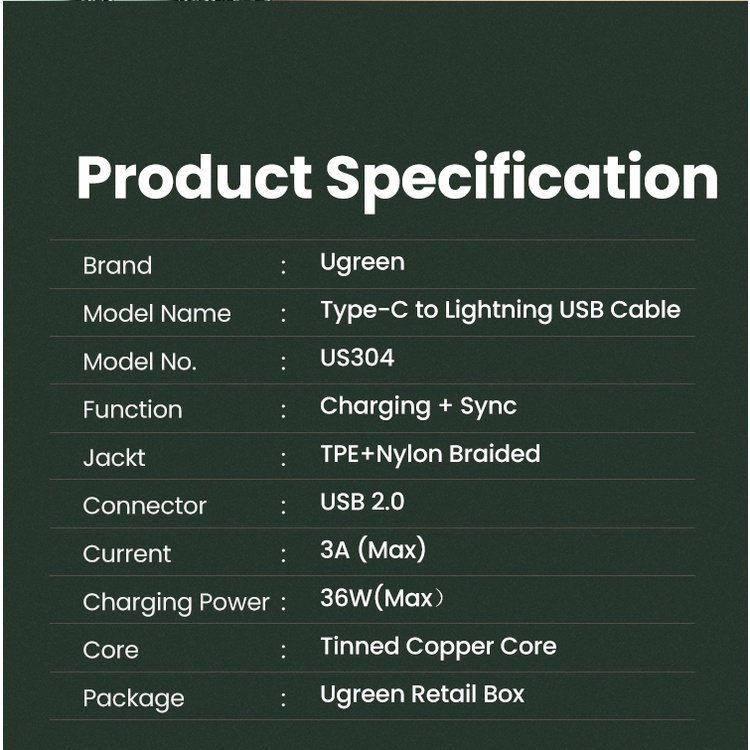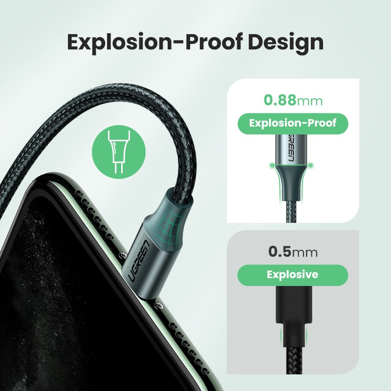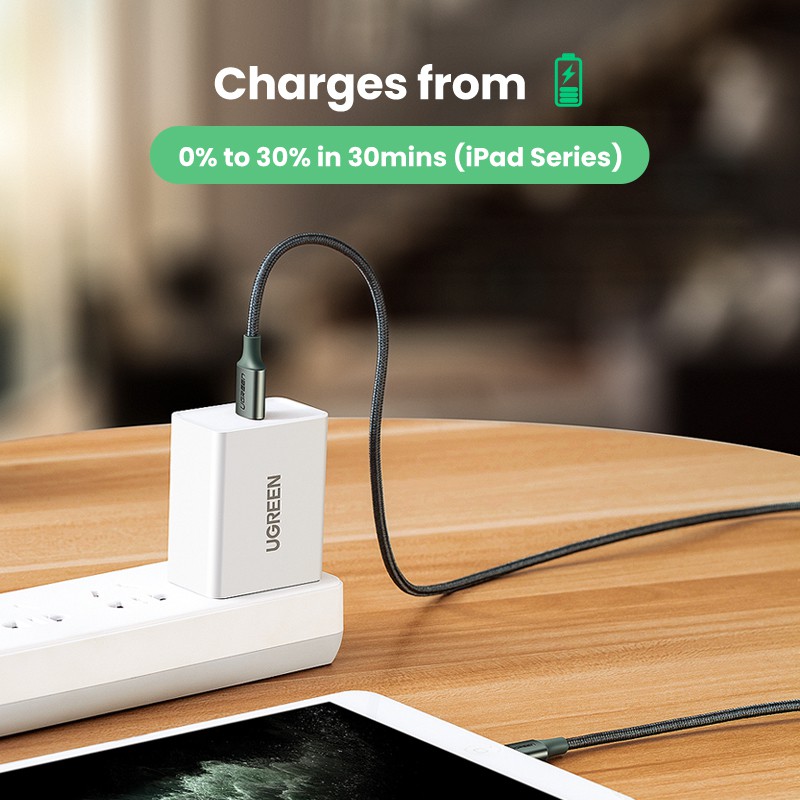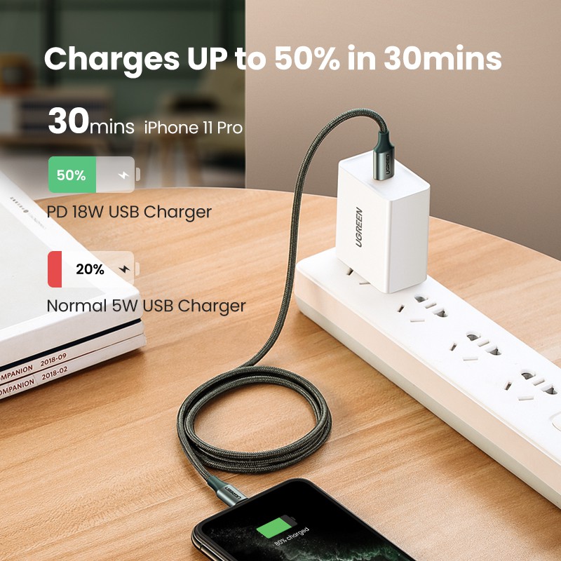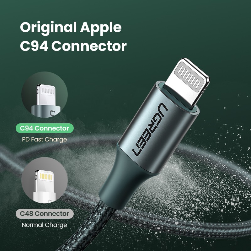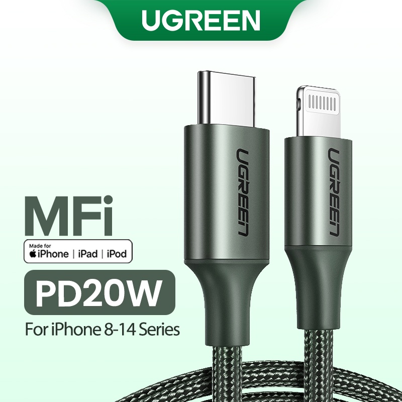 UGREEN original mfi สายเคเบิ้ล USB C แปลงเป็น ไลท์นิ่ง สีเขียวเข้ม สําหรับโทรศัพท์มือถือ 1M