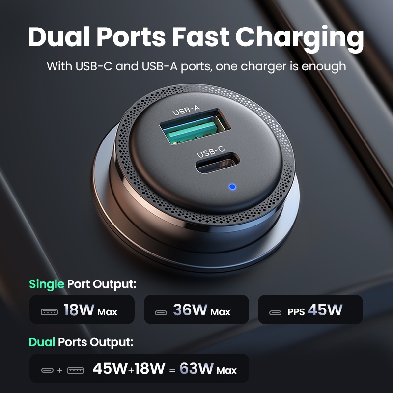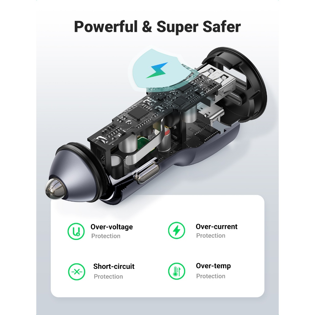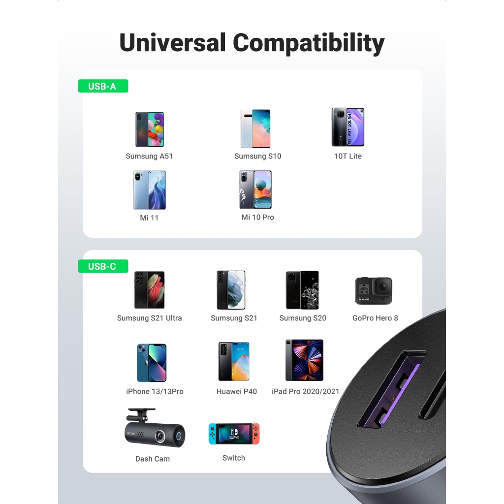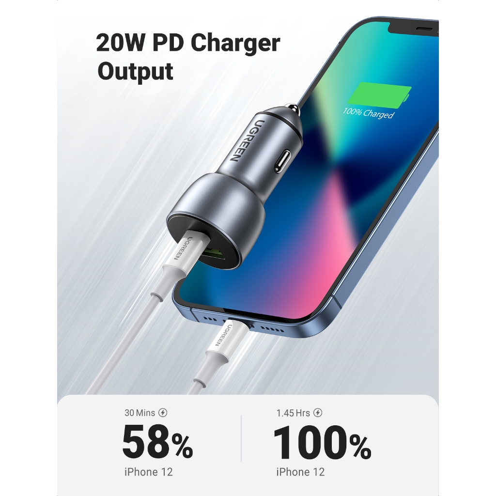 Ugreen ที่ชาร์จในรถยนต์ แบบพอร์ตคู่ 63W 18W 36W PD QC สําหรับ Samsung PPS iPhone 14 Pro Max Huawei Mate 40