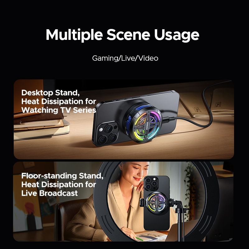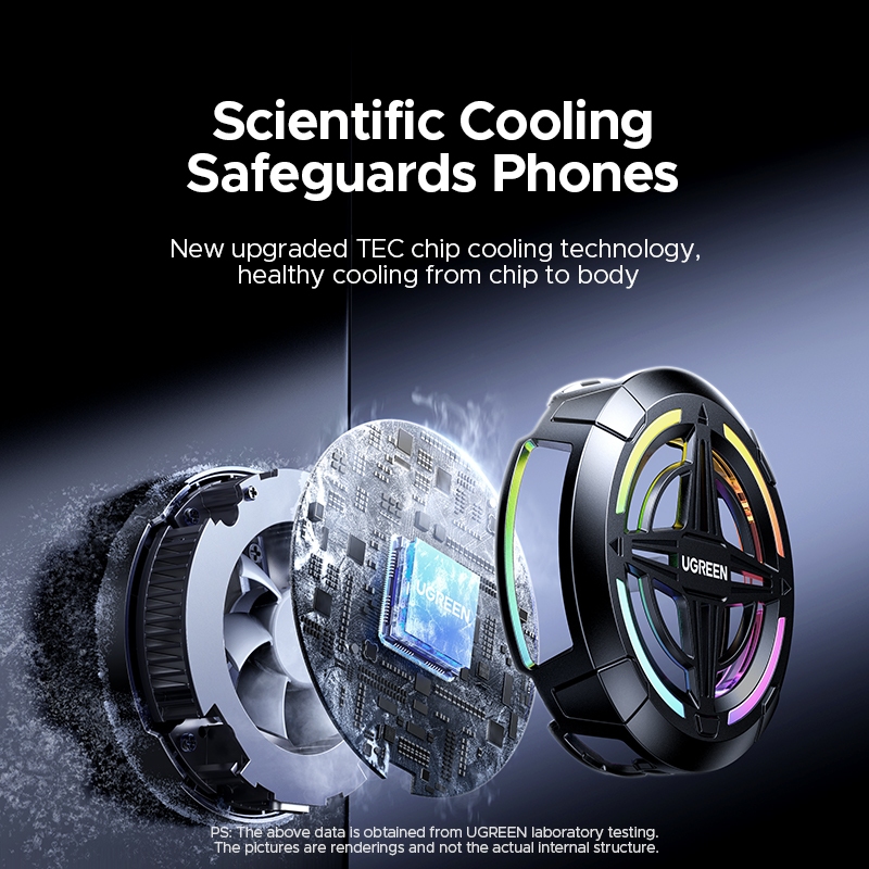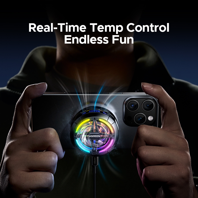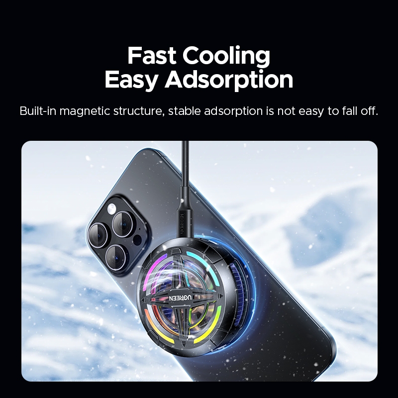 UGREEN NewUGREEN Magnetic phone Cooler พร้อมสายชาร์จ 1 ม.สําหรับเล่นเกมและถ่ายทอดสดฟรีคลิปโทรศัพท์ที่ถอดออกได้สําหรับ iPhone 16 Pro Max Samsung S25 Ultra Vivo Oppo