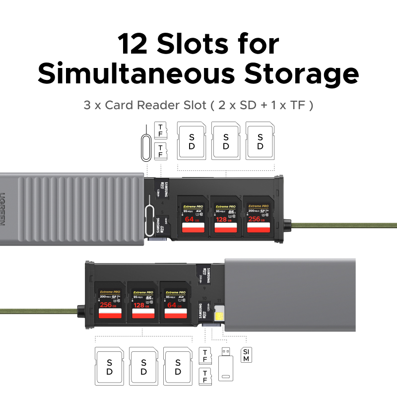 UGREEN USB-A+USB-C ถึง 2 * SD + 1 * TF Card Reader พร้อมเครื่องมือ SIM Ejector USB 3.0 OTG Storage และอ่าน 2 in 1 5Gbps Card Reader สําหรับอุปกรณ์ Apple และ Android