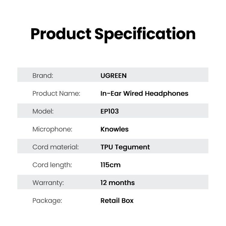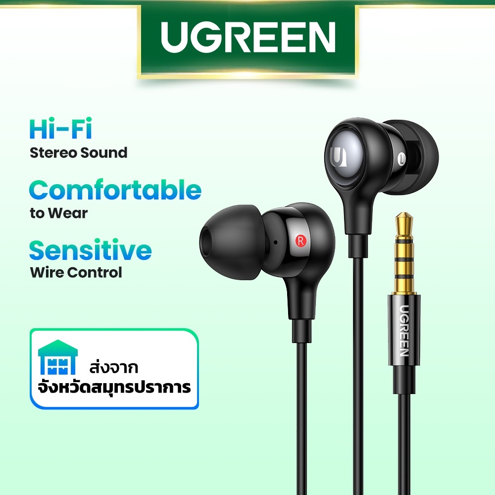 UGREEN ชุดหูฟังเอียร์บัด แบบมีสาย 3.5 มม. หูฟังอินเอียร์ พร้อมไมโครโฟน คุณภาพเสียงไฮไฟ สําหรับ Android Mp3 Mp4 Pad
