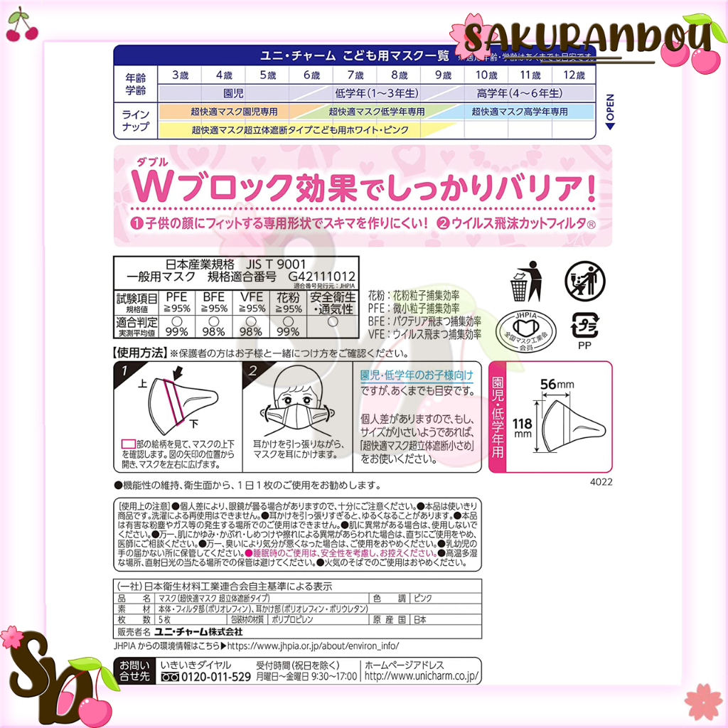 ยูนิชาร์ม Unicharm [พร้อมส่ง] หน้ากากอนามัย แบบ 3D ของเด็ก ซอง 5 ชิ้น / 20 ชิ้น นำเข้าจากญี่ปุ่น