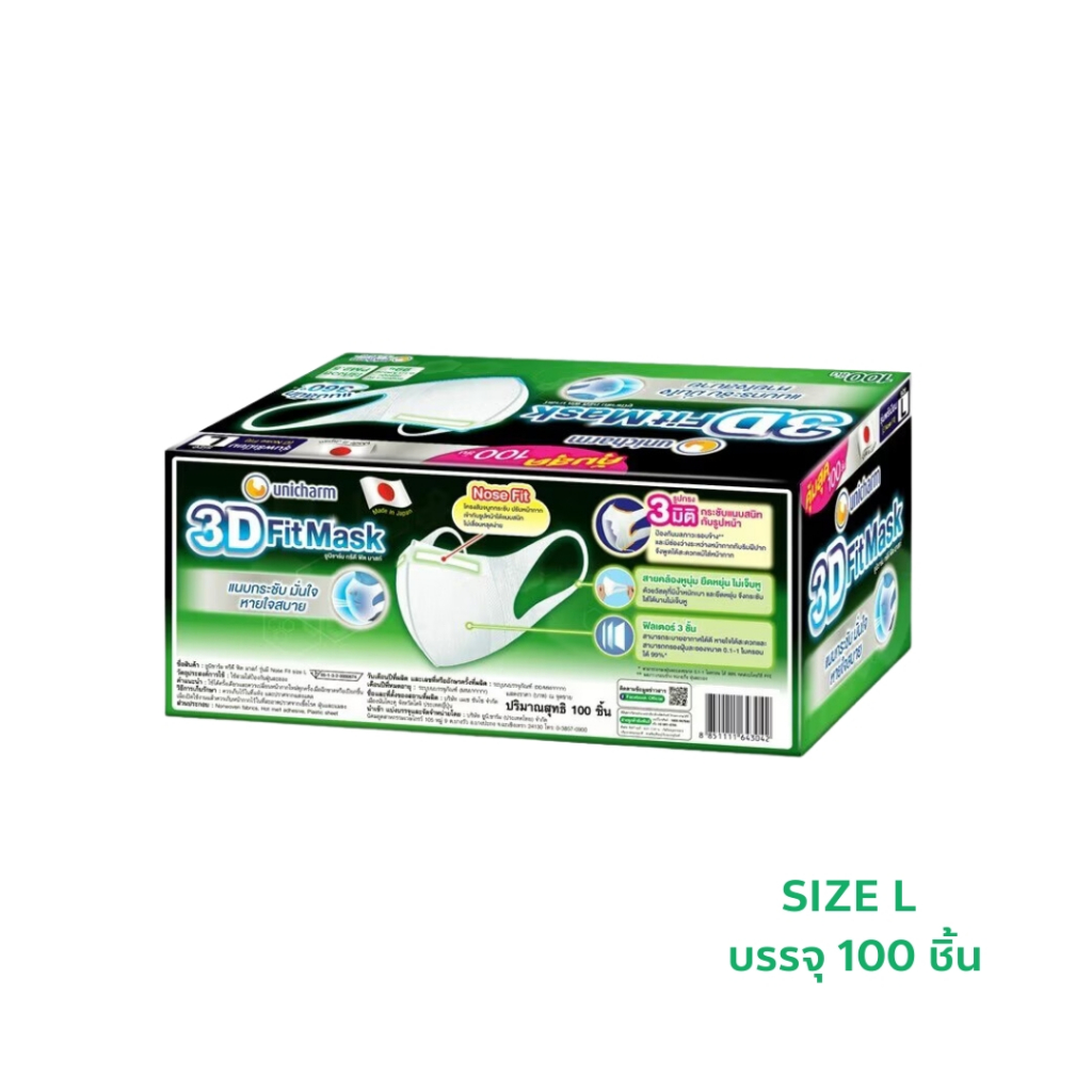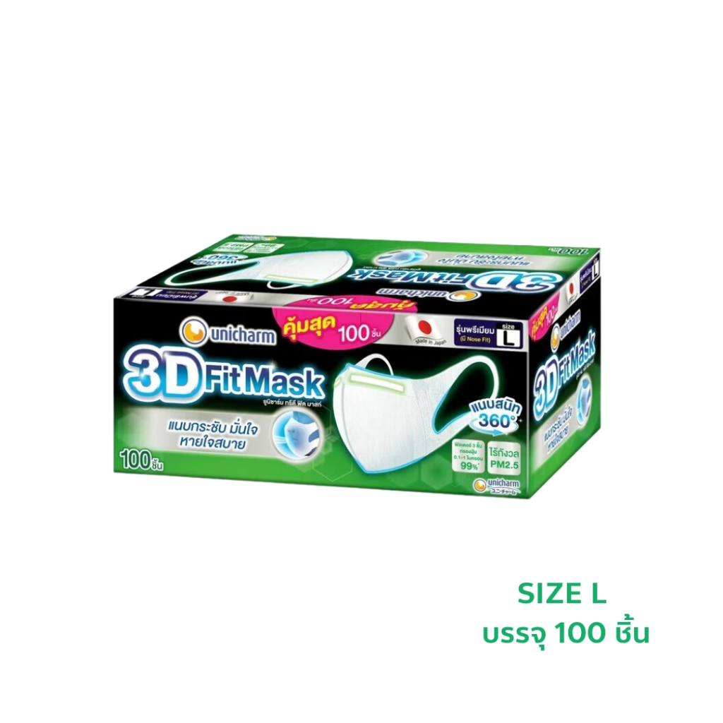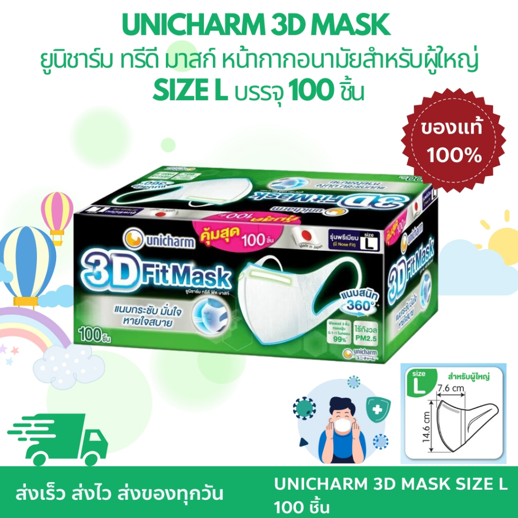 UNICHARM 3D MASK Adult ยูนิชาร์ม ทรีดี มาสก์ หน้ากากอนามัยสำหรับผู้ใหญ่ ขนาด size L บรรจุ 100 ชิ้น