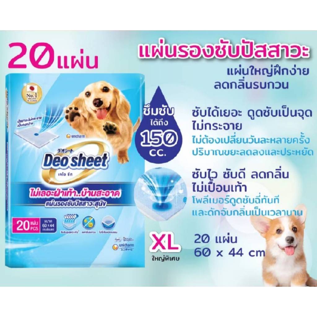 Unicharm Deosheet แผ่นรองซับปัสสาวะสุนัข ปริมาณ 48-20 แผ่น เดโอชีท ซึมซับดีเยี่ยม ไม่เลอะเท้าสุนัข