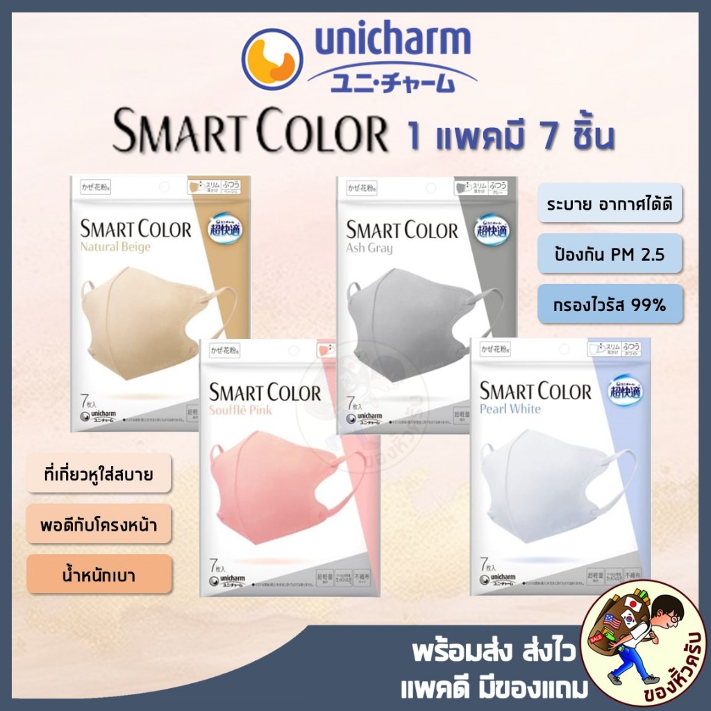 [พร้อมส่ง] Unicharm Smart Color 3D หน้ากากอนามัยญี่ปุ่น ป้องกันไวรัส 99% PM 2.5 ( แพคละ 7 ชิ้น )