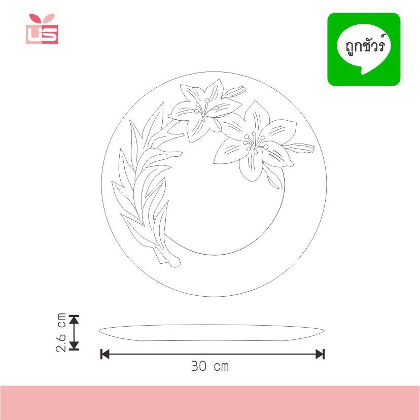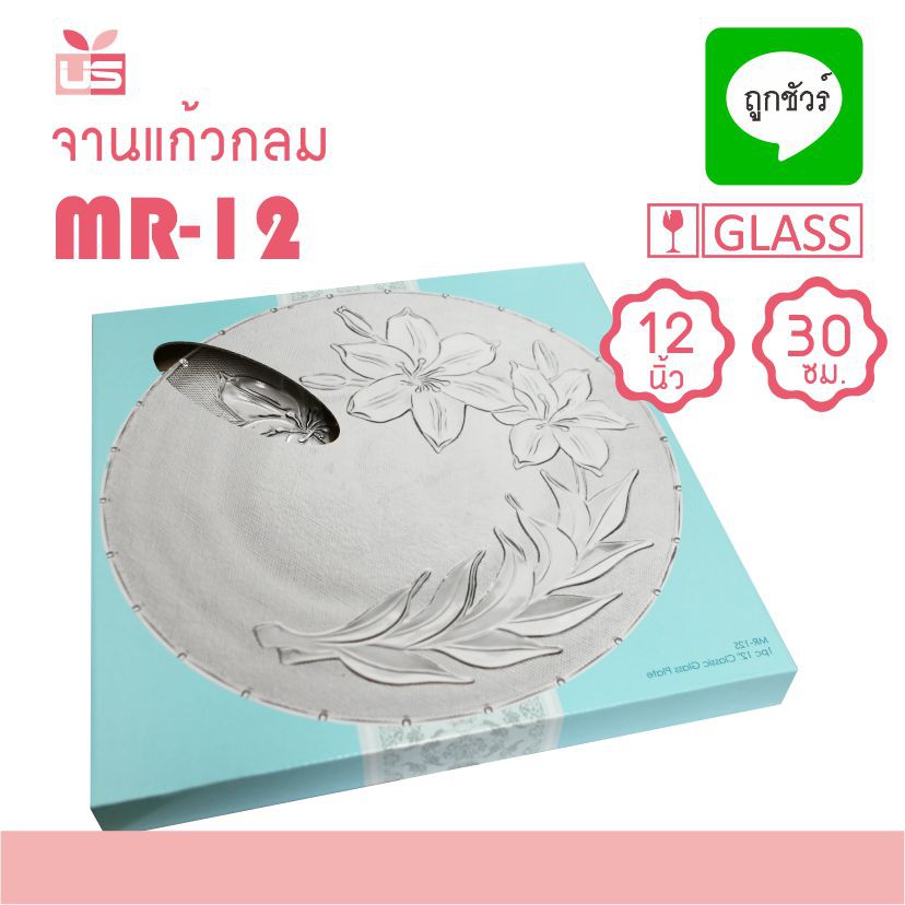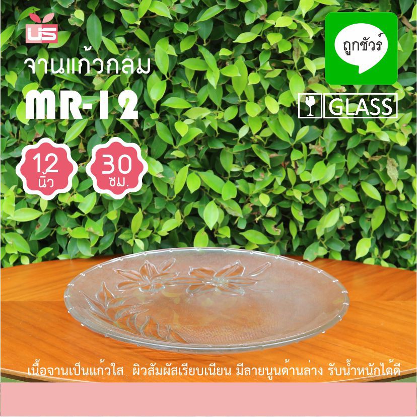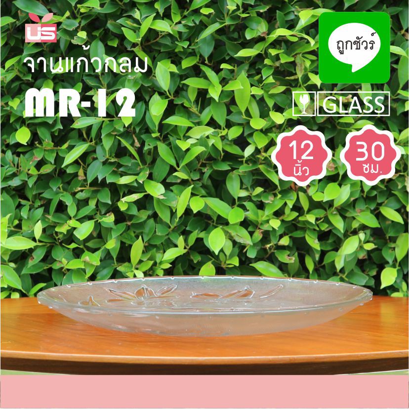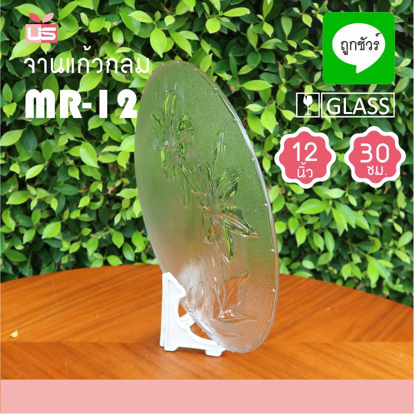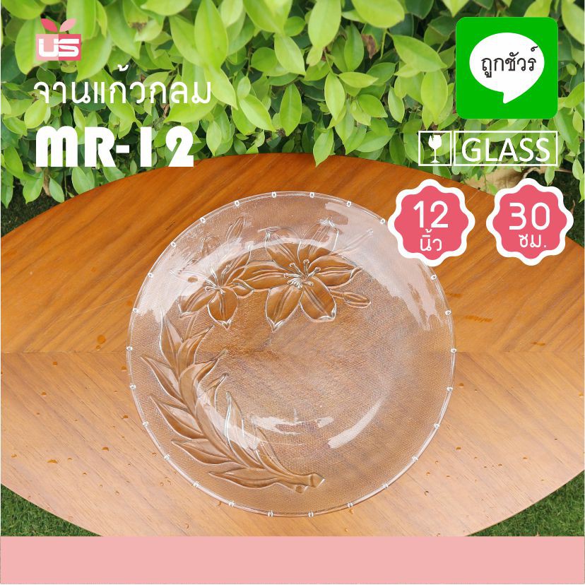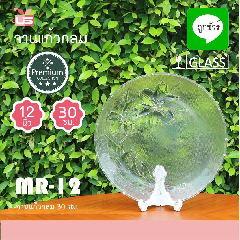 จานแก้ว 12 นิ้ว MR-12 ลายดอกไม้