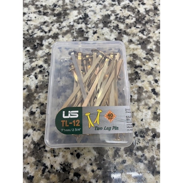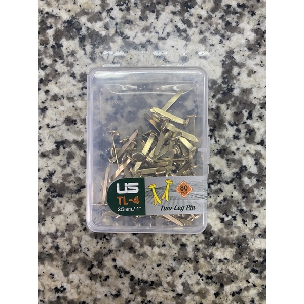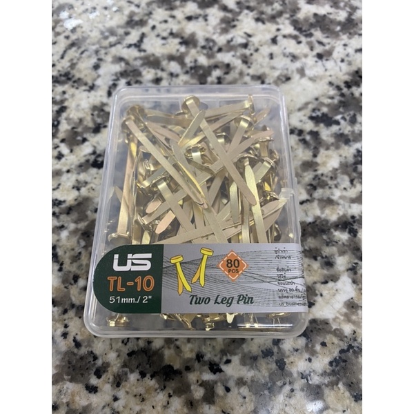 หมุดทองเหลือง เป๊กทองเหลือง หมุดสำนวน ยี่ห้อ US 0.75/1/1.5/2/2.5นิ้ว บรรจุ 80ตัว หมุดลิ้นแฟ้มโลหะ หมุดสองขา US.Station