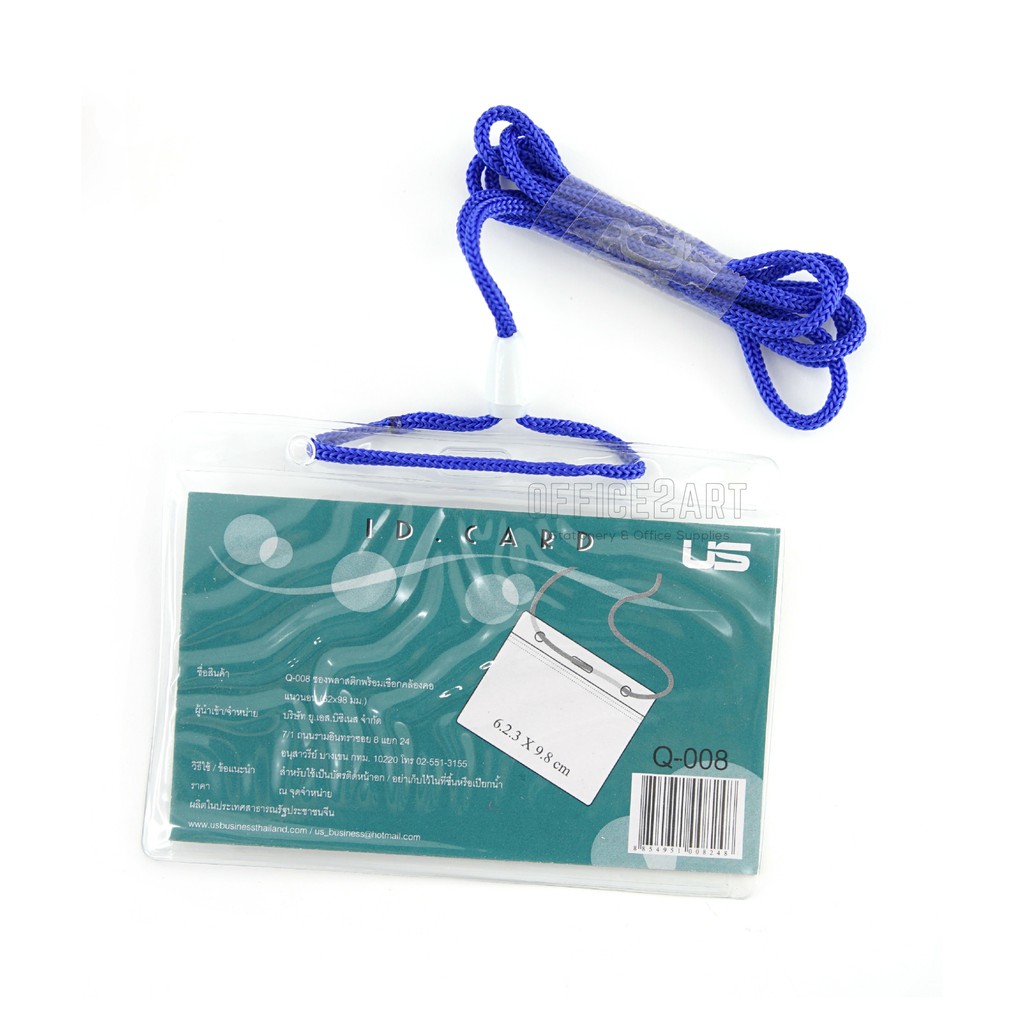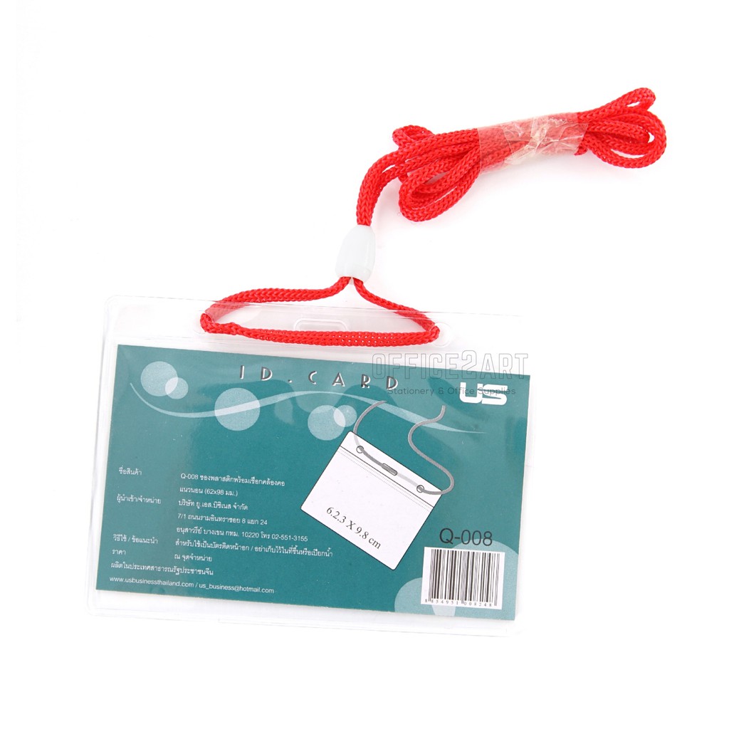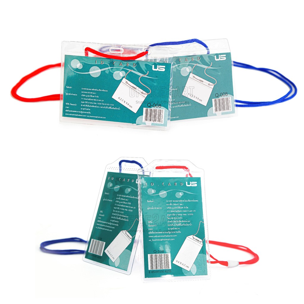 ป้ายชื่อ ป้ายพนักงาน ซองใส่บัตร ซองพลาสติก พร้อมเชือกคล้องคอ US Q108 แนวตั้ง , Q008 แนวนอน (กล่อง 50 ชุด) [S24]