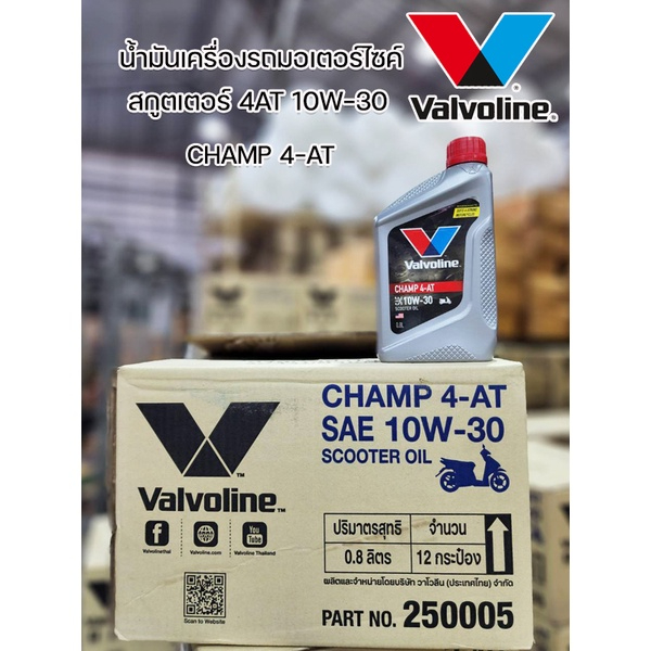 โฉมใหม่ น้ำมันเครื่องมอเตอร์ไซค์สกูตเตอร์ Valvoline 4AT 10W30 Champ 4AT 0.8L ราคาขายส่งยกลัง ลังละ 12 กระป๋อง