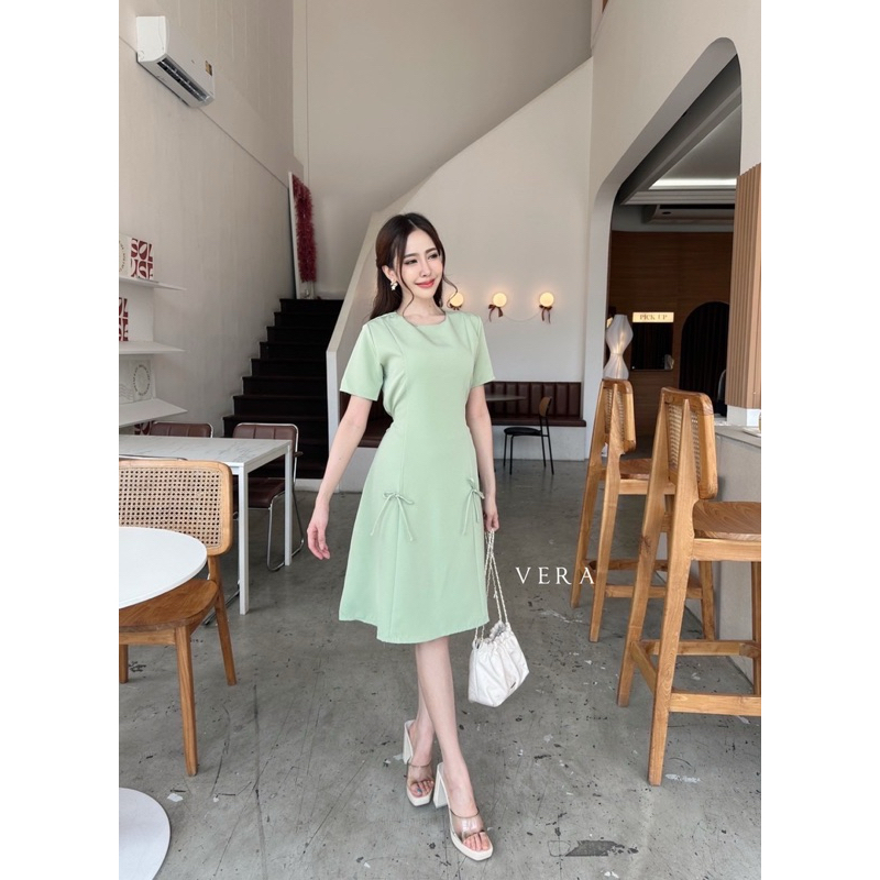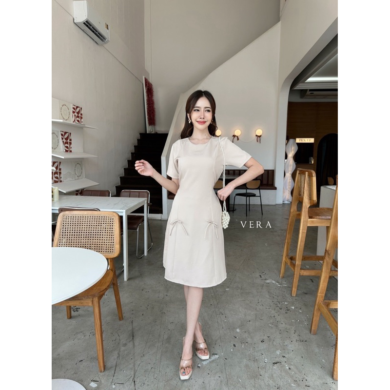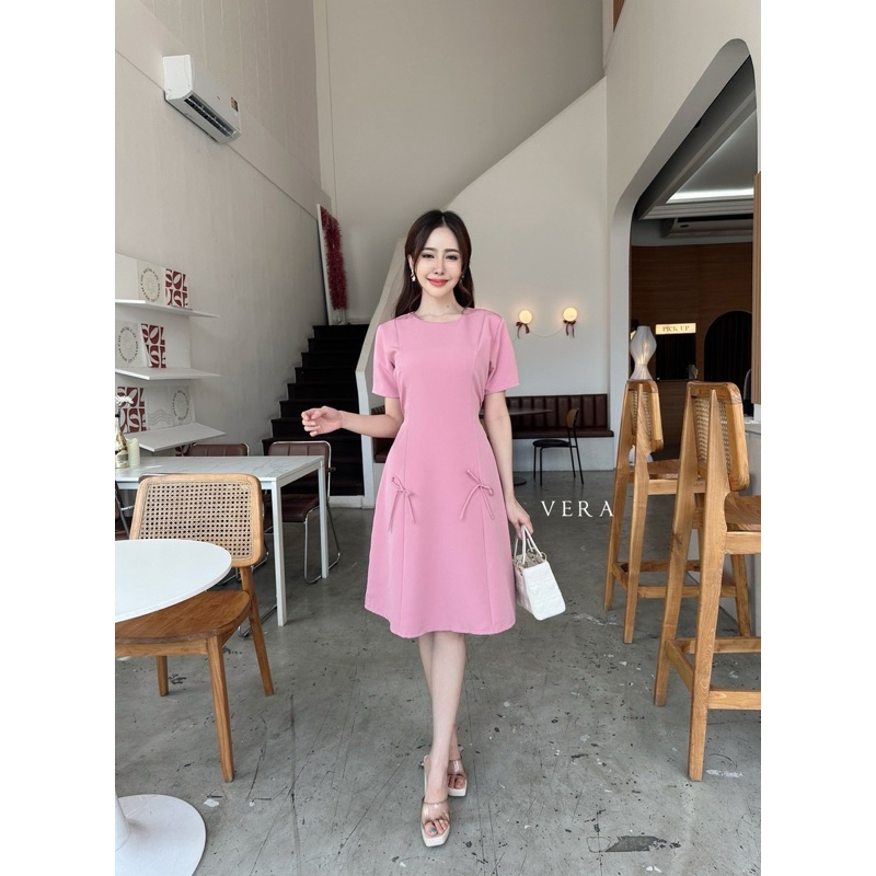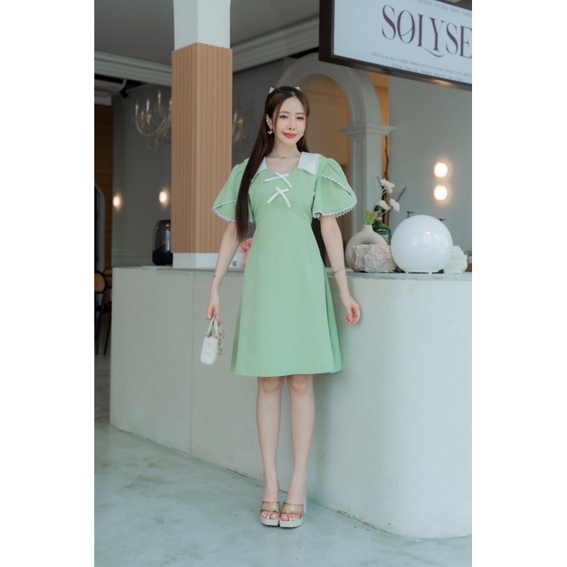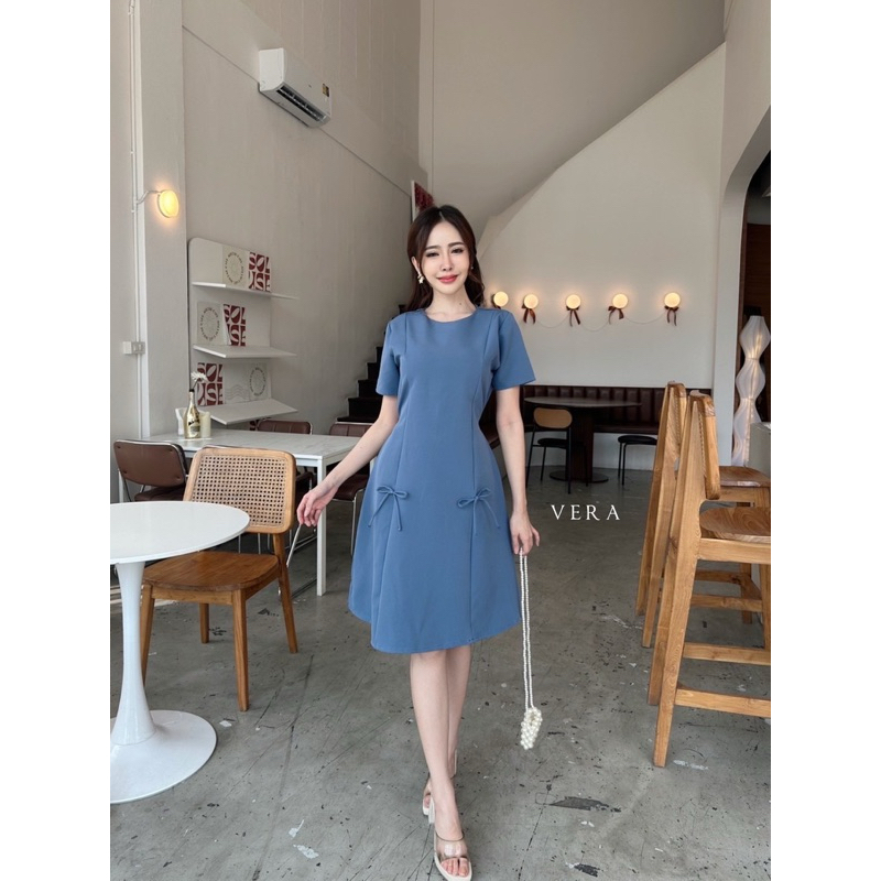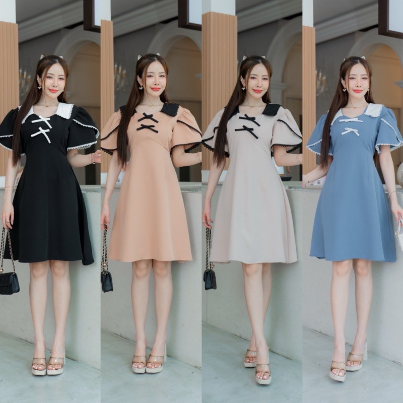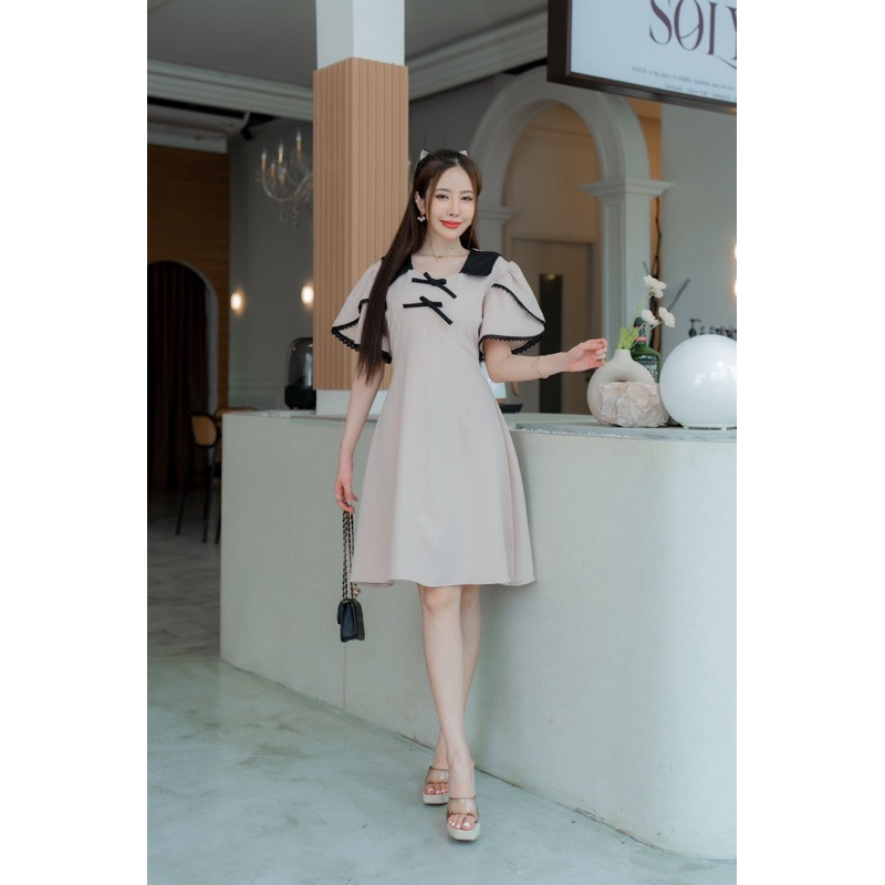 Onny dressเดรสคอปกทูโทน เเต่งลูกไม้รอบเเขน โบว์ด้านอกป้ายVera