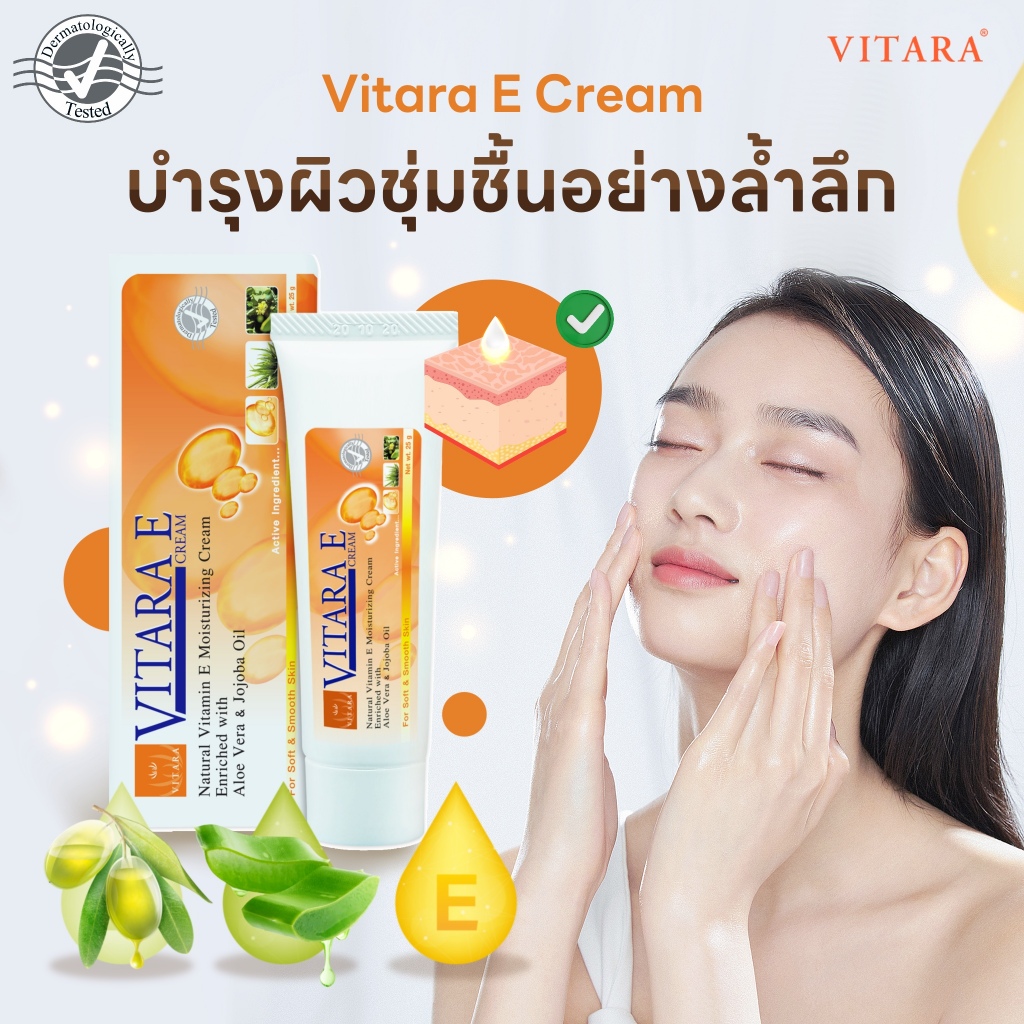 Vitara E Cream 25g 50g ไวทาร่า อี ครีม วิตามินอีเข้มข้น รอยแผลเป็น จุดด่างดำดูจางลง บำรุงผิว