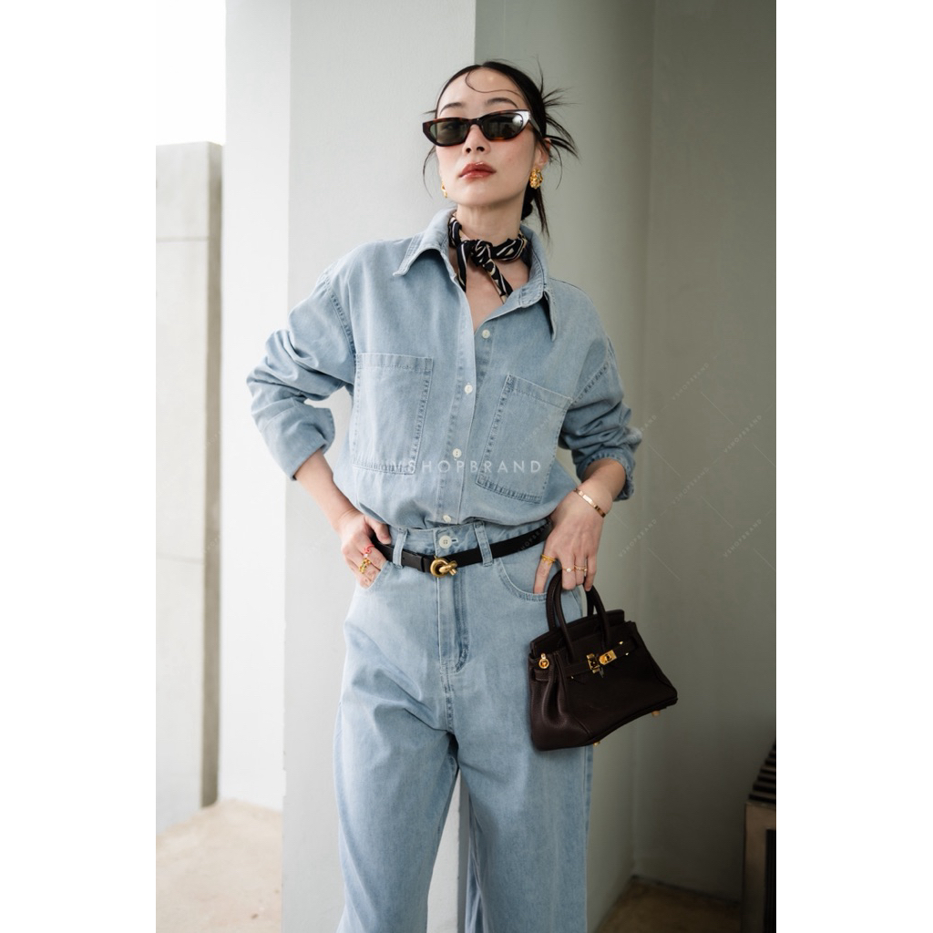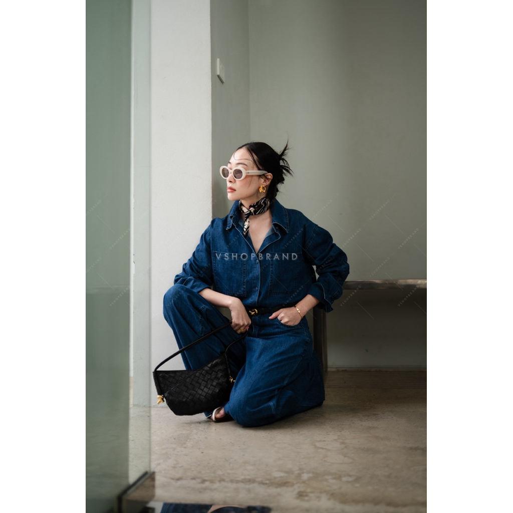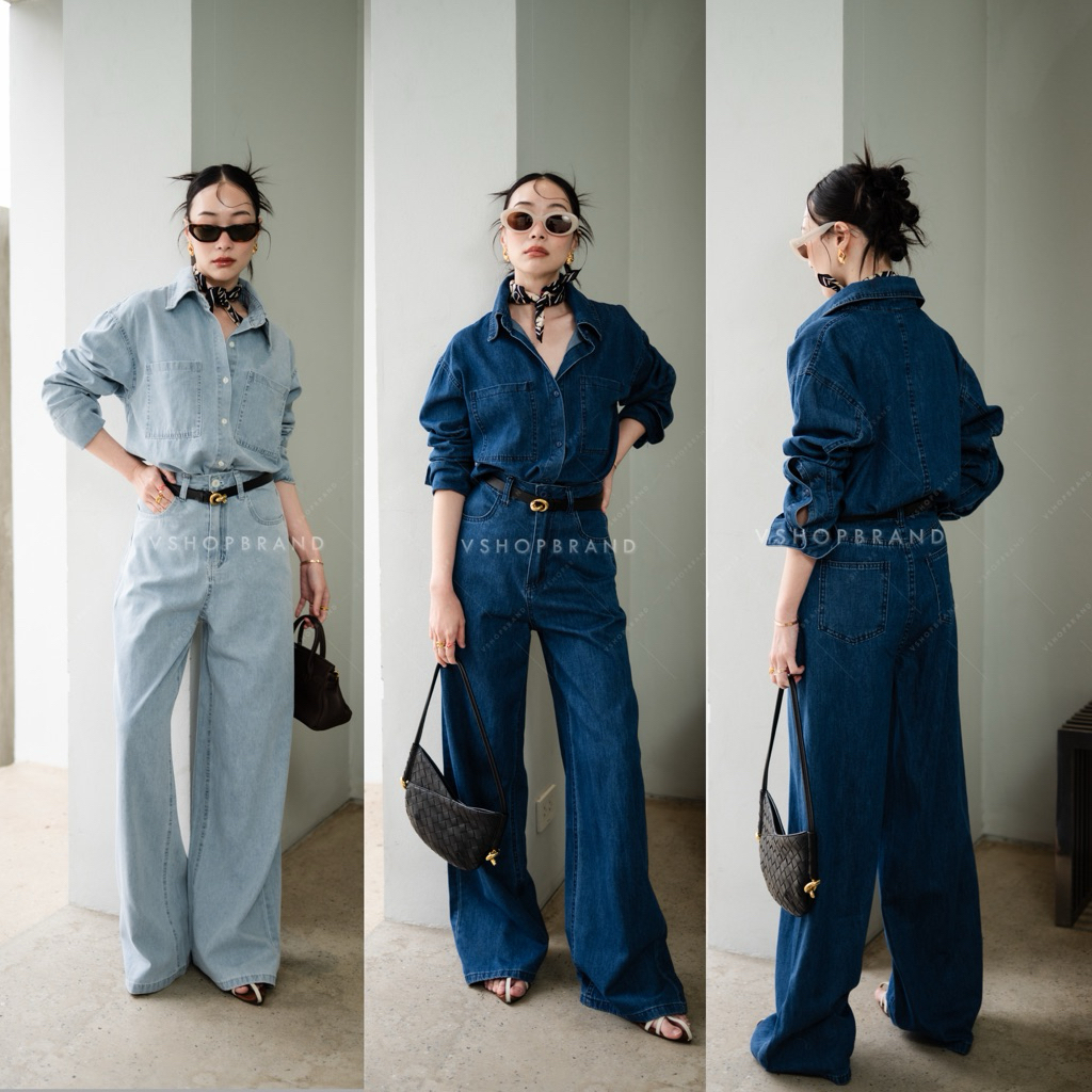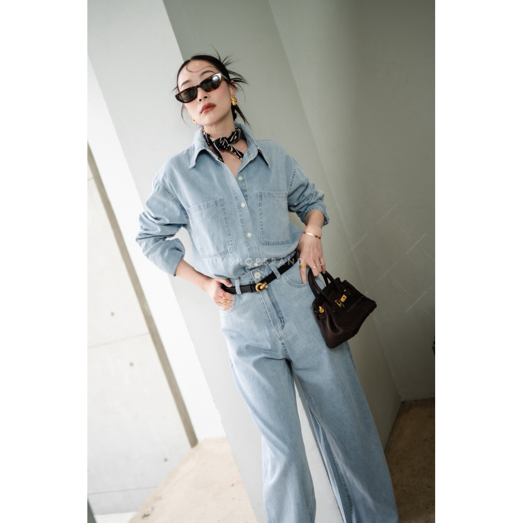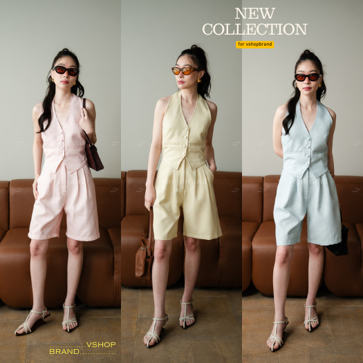 พร้อมส่ง Set เสื้อครอปผ้าทวิตคล้องคอ + กก.ขา 3 ส่วน งานป้ายvshopbrand