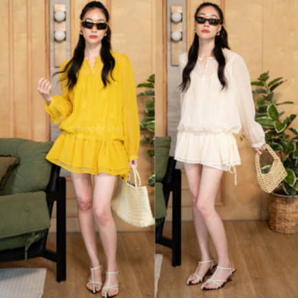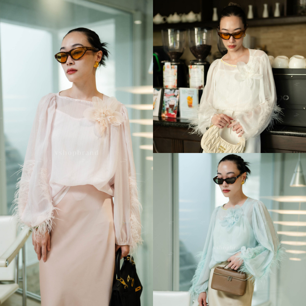 พร้อมส่ง เสื้อซีทรูผ้าวิ้งแขนขนนก ดอก3มิติอก งานป้าย vshopbrand