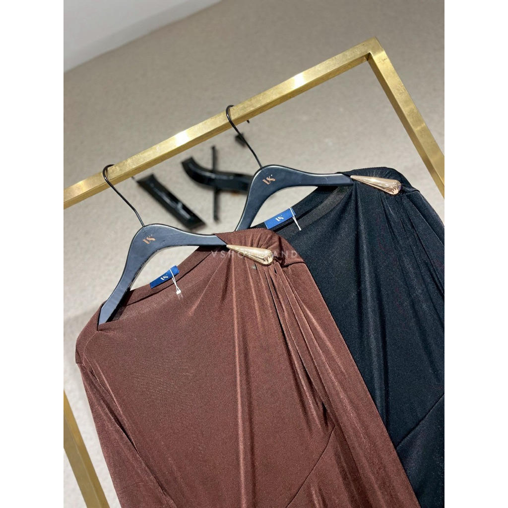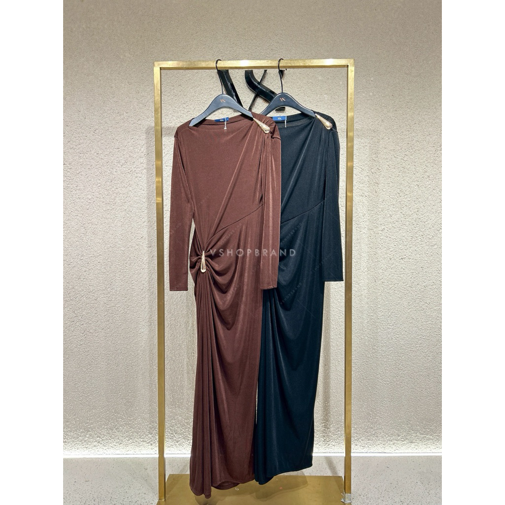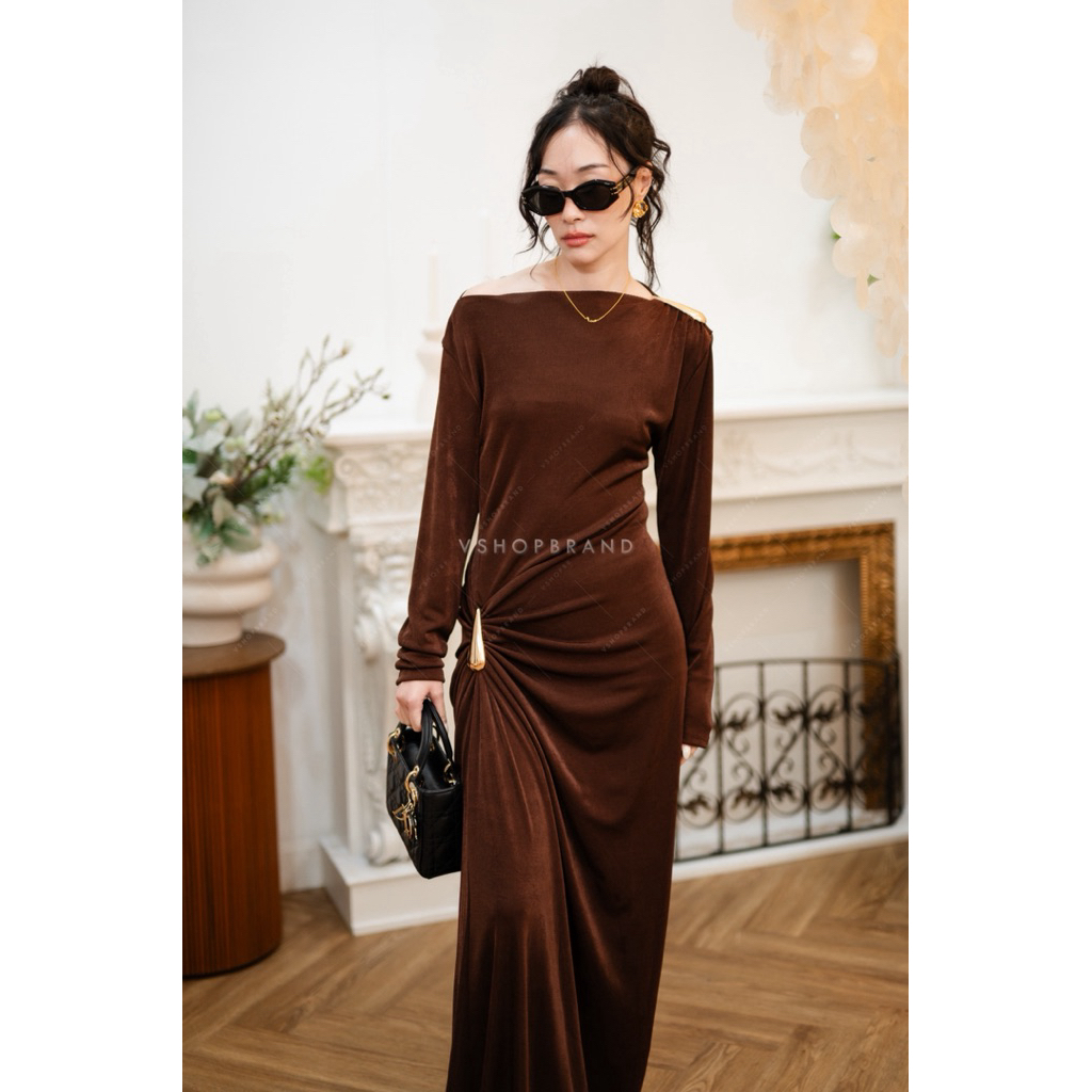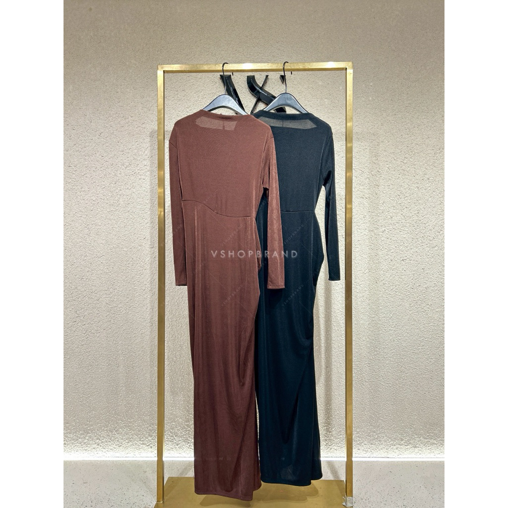 พร้อมส่ง ชุดออกงาน Maxi เดรสแขนกุดกลิตเตอร์ชายฟรุ้งฟริ้ง งานป้าย vshopbrand