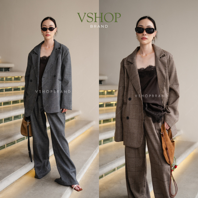 พร้อมส่ง Set Blazer สูทลายชิโน + กก.ขายาว งานป้ายvshopbrand