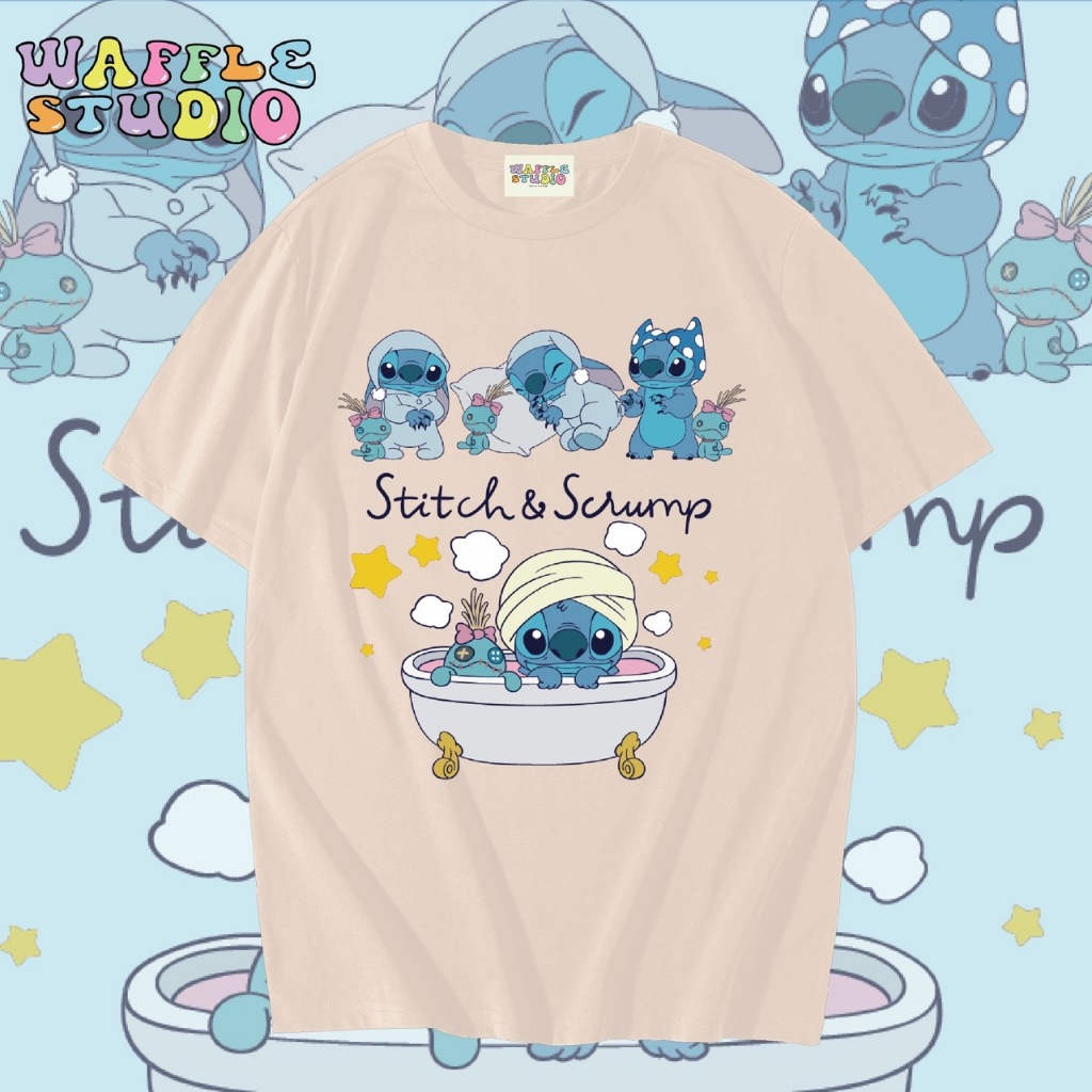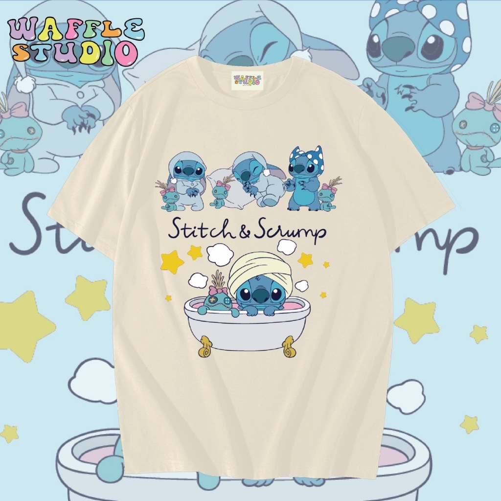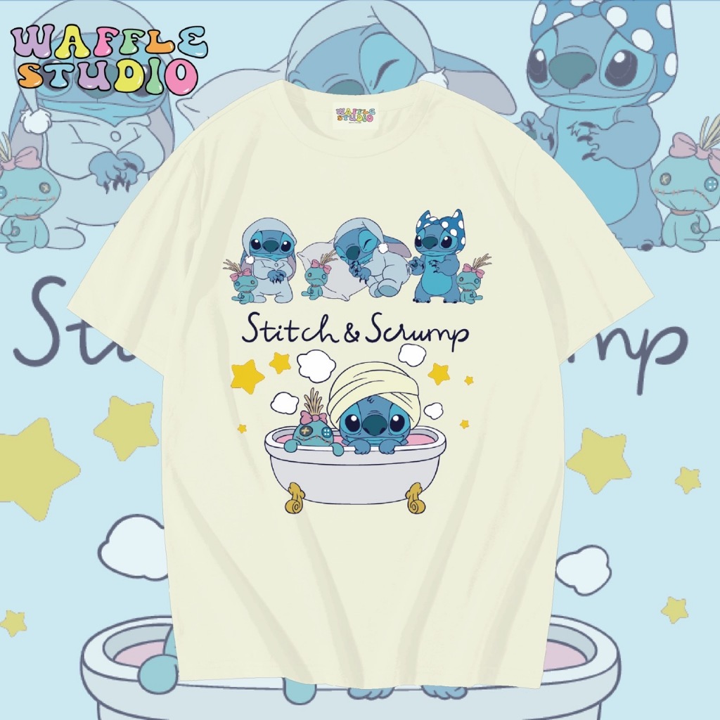 [ ส่งฟรี 🔥 ] WS1589 เสื้อยืดโอเวอร์ไซส์ ผ้าคอตตอน 100% เสื้อยืดเกาหลี เสื้อยืด สตริช stitch สติช WAFFLE STUDIO