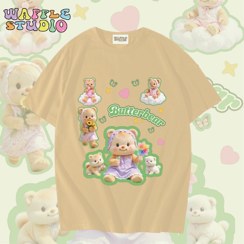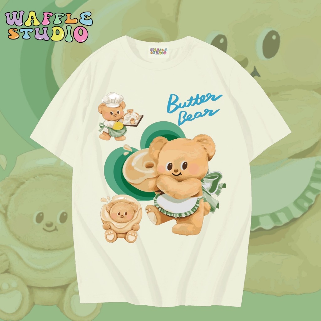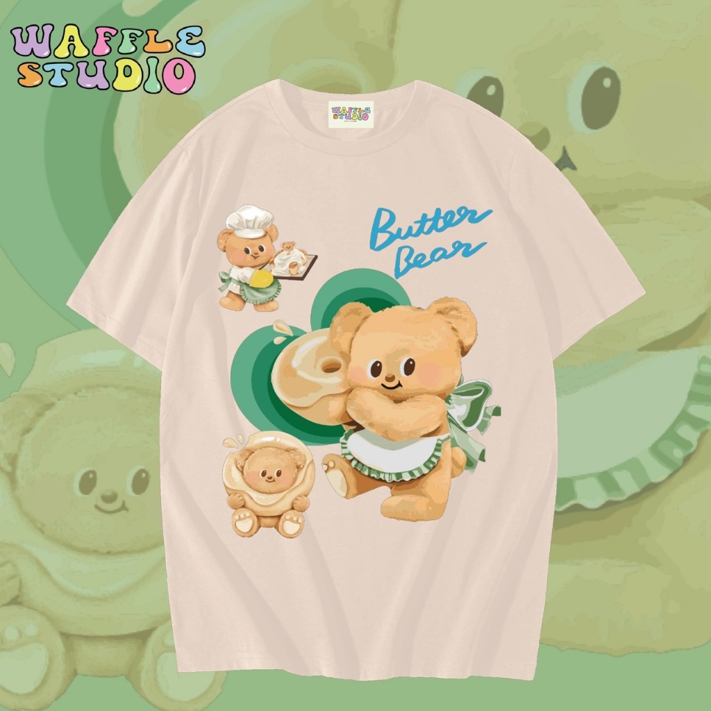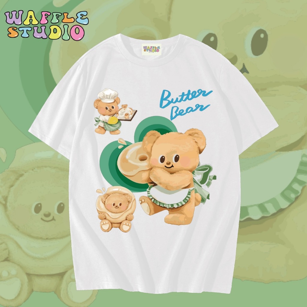 [ ส่งฟรี 🔥 ] WS1547 เสื้อยืดโอเวอร์ไซส์ ผ้าคอตตอน 100% เสื้อยืดเกาหลี เสื้อยืด Butterbear หมีเนย น้องเนย WAFFLE STUDIO
