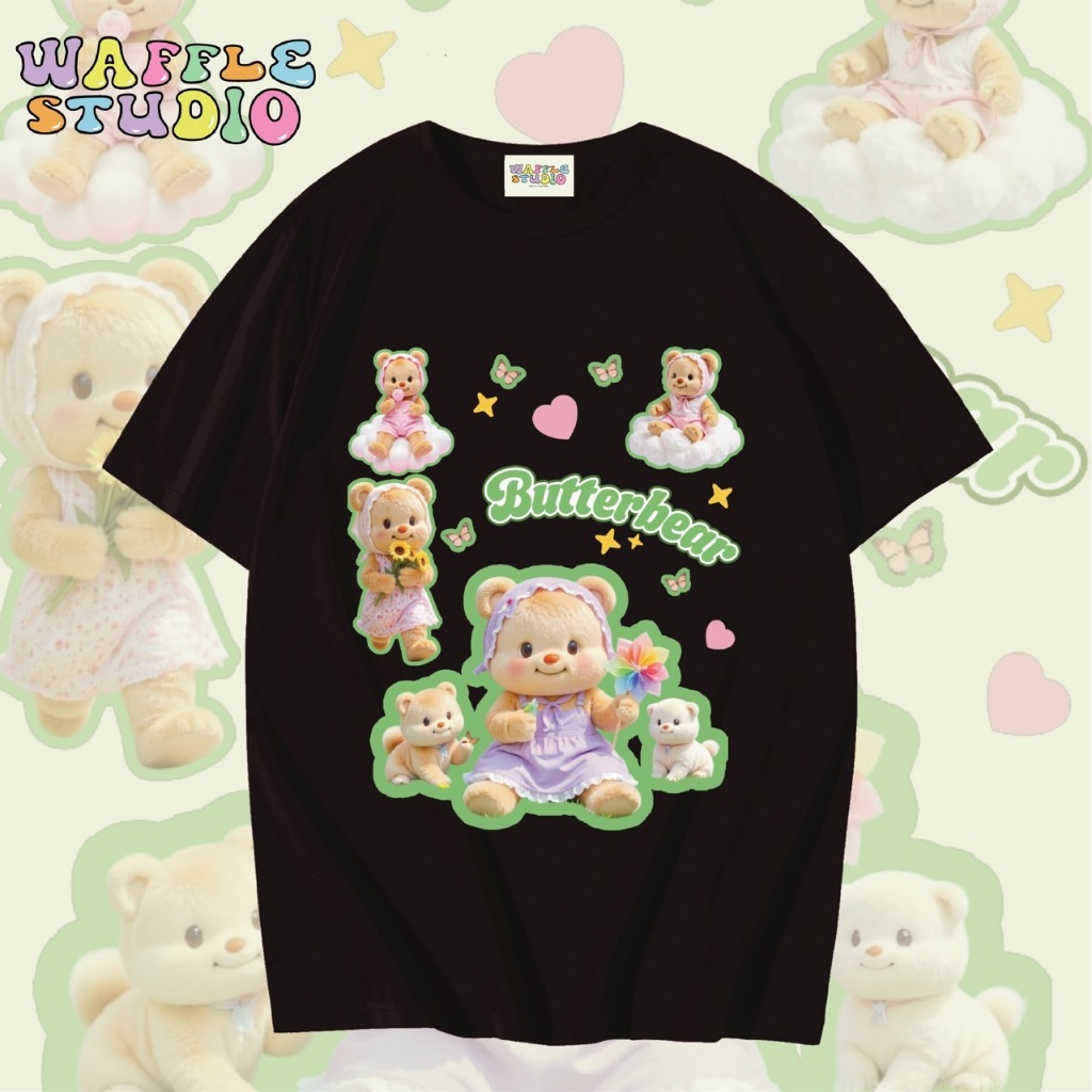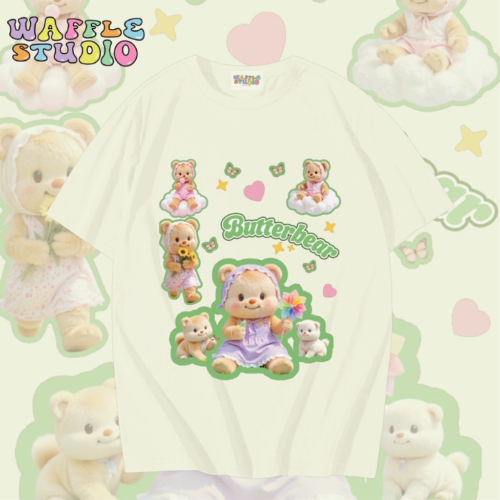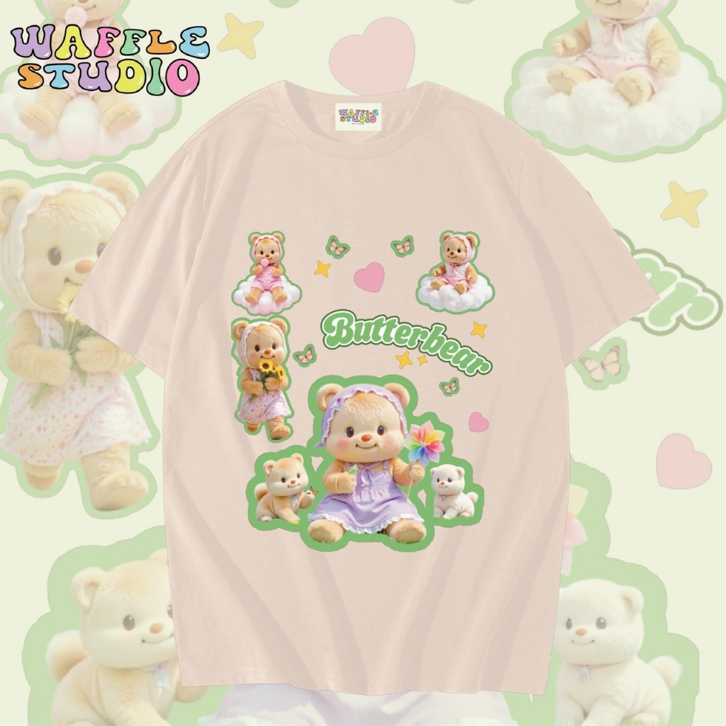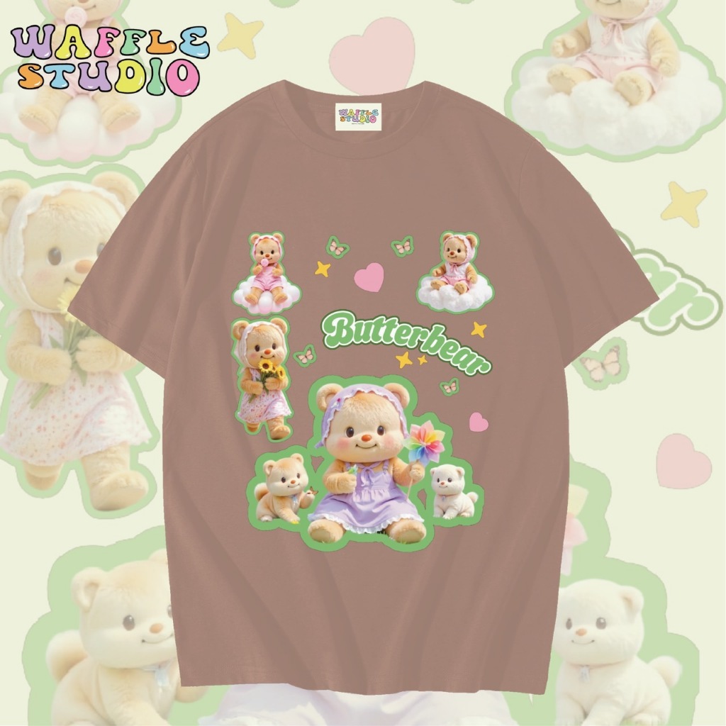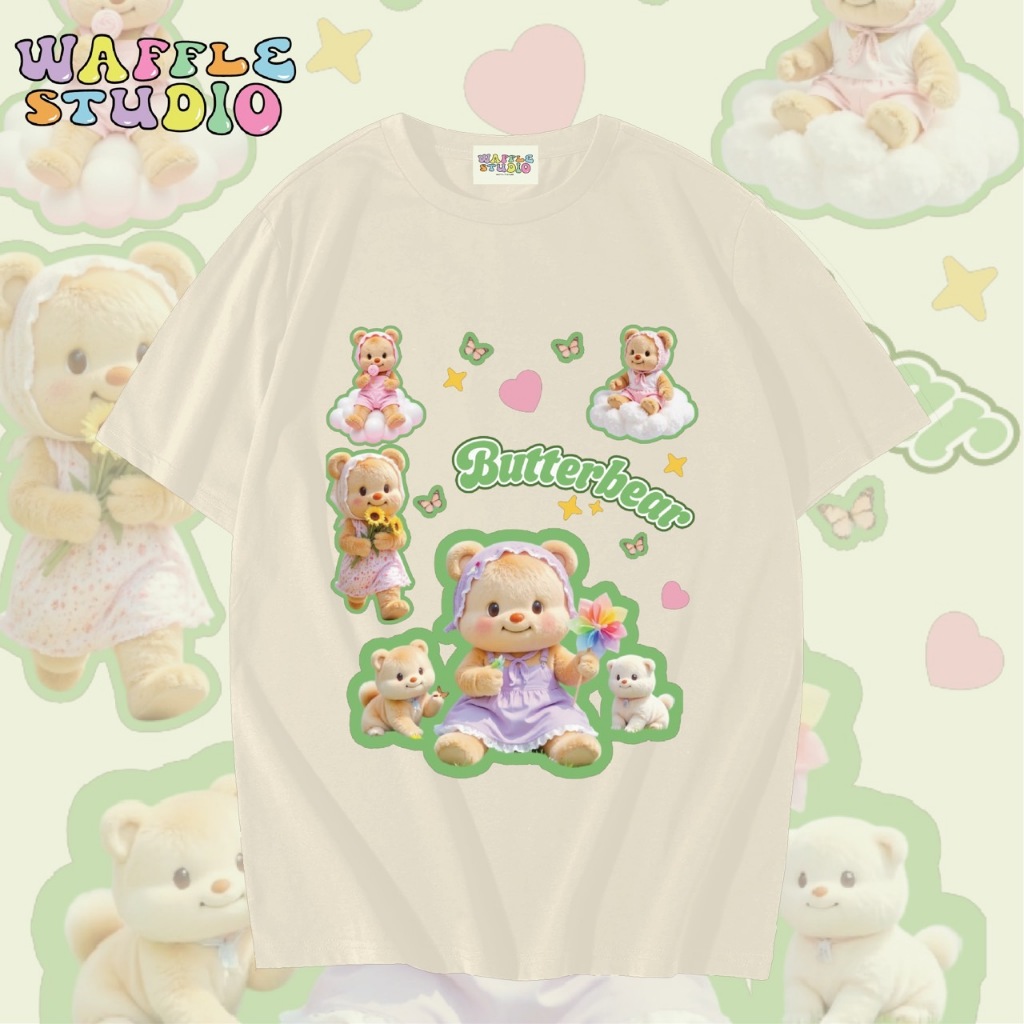 [ ส่งฟรี 🔥 ] WS1547 เสื้อยืดโอเวอร์ไซส์ ผ้าคอตตอน 100% เสื้อยืดเกาหลี เสื้อยืด Butterbear หมีเนย น้องเนย WAFFLE STUDIO