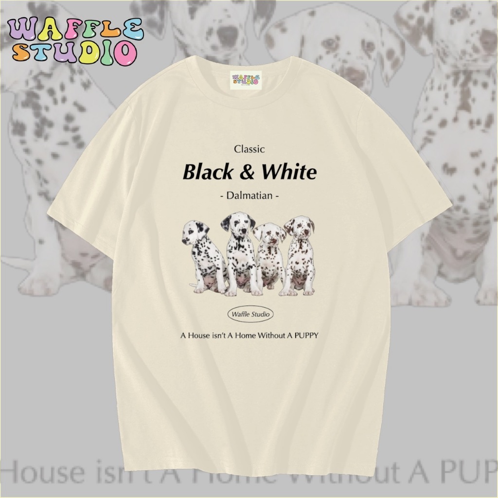 [ ส่งฟรี 🔥 ] WS0159 เสื้อยืดโอเวอร์ไซส์ เสื้อยืดเกาหลี ผ้าคอตตอน100% เสื้อยืด ดัมเมเชียล ทาสหมา WAFFLE STUDIO