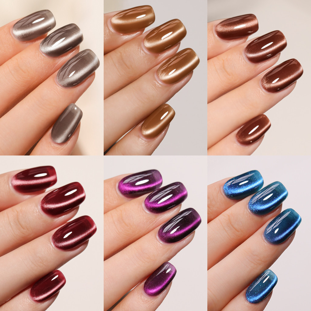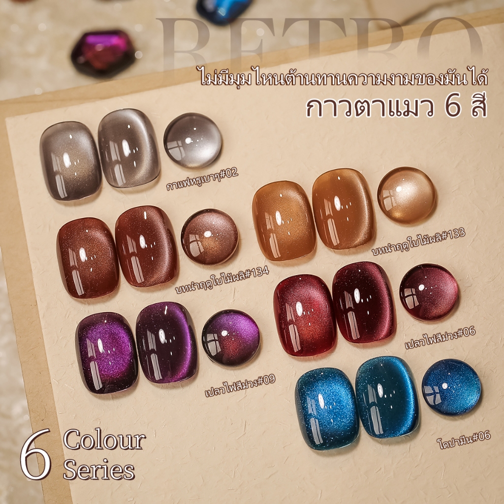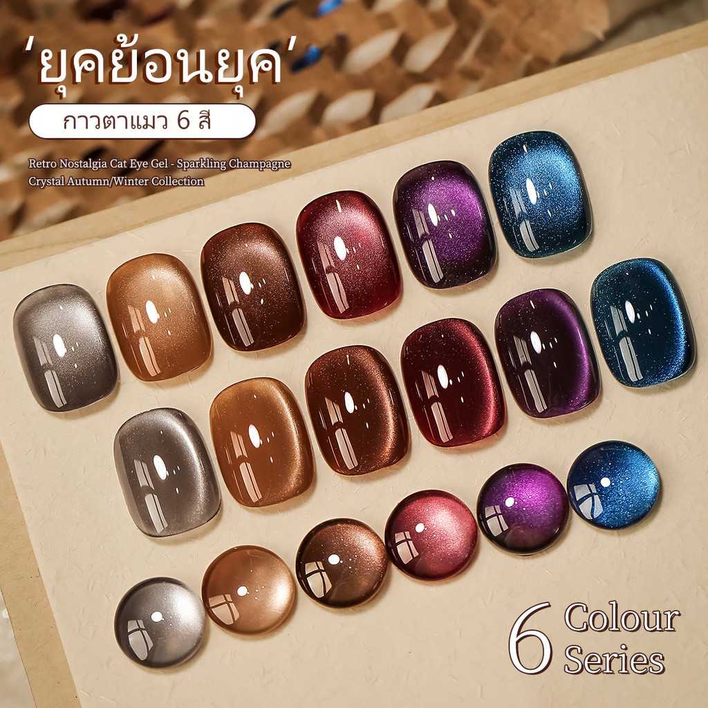 ชุดตาแมวใหม่ 6 สี เขียว ม่วง ชมพู สำหรับทำเล็บที่บ้านและร้านทำเล็บ