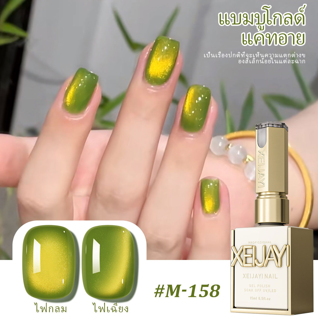 XEIJAYI 15มล– M158 น้ำยาทาเล็บสีตาแมวสีทองไผ่ใหม่ติดทนนาน เหมาะสำหรับร้านทำเล็บและของขวัญวันหยุด