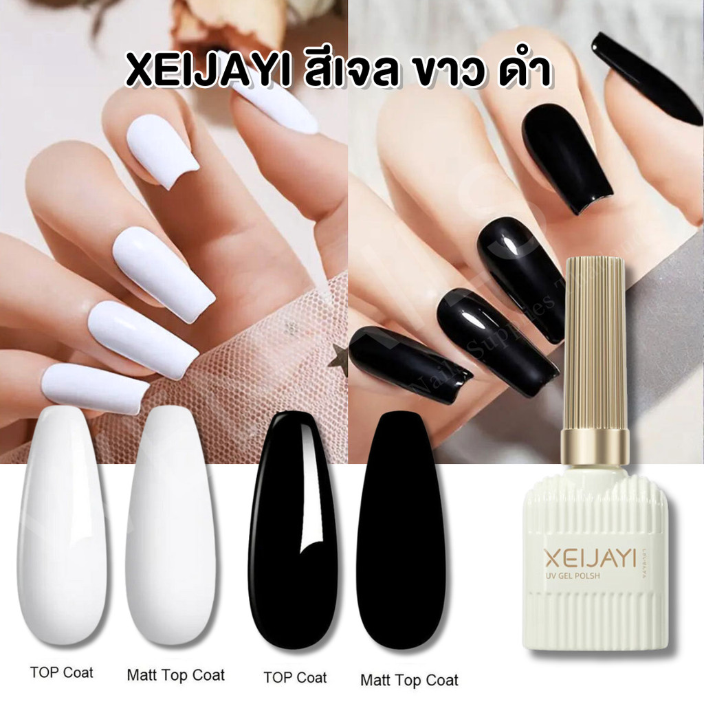 XEIJAYI Black&White สีขาว สีดำ ยาทาเล็บเจล สีเจลทาเล็บ ยาวทาเล็บเจล ฝาทอง 15ml -wenailsth