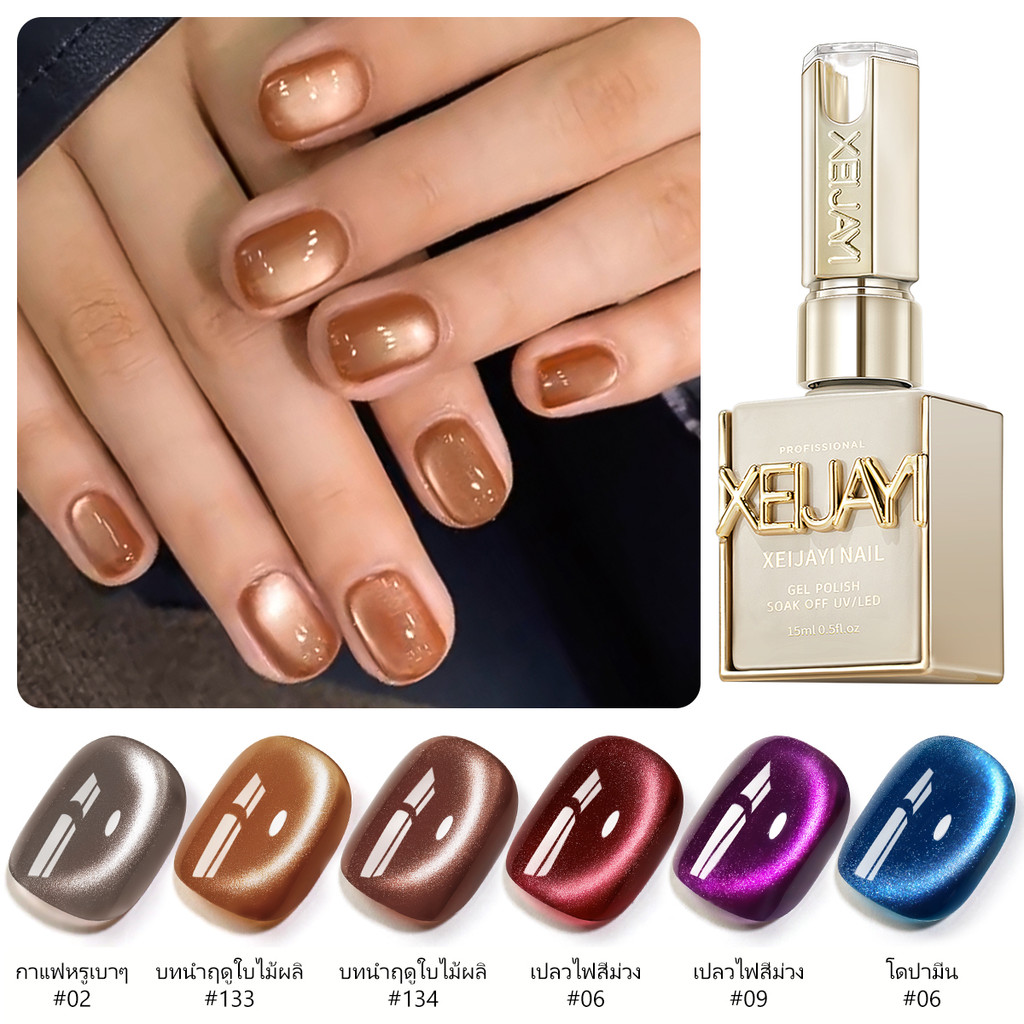 XEIJAYI 15มล. น้ำยาทาเล็บเจลแม่เหล็กลายตาแมวสีน้ำตาลโดปามีนใหม่ เงางามติดทนนาน เหมาะสำหรับร้านทำเล็บ
