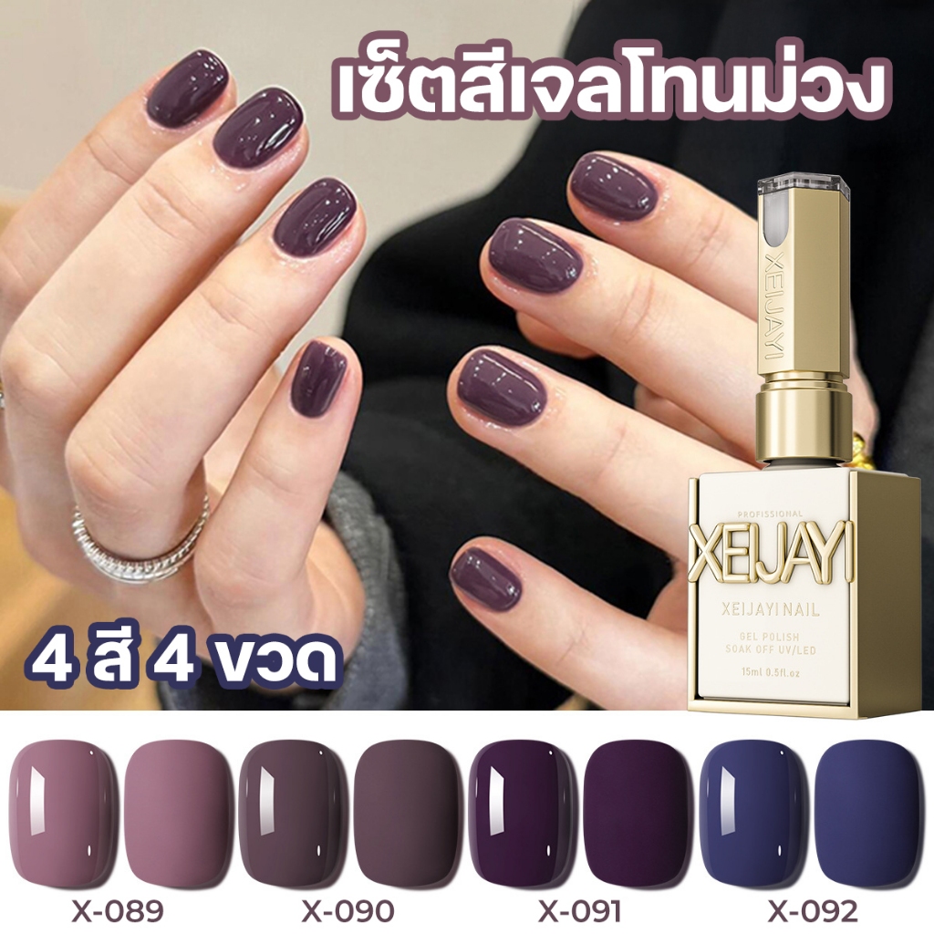 Xeijayi เซ็ตสีเจลทาเล็บ 4 ขวด โทนสีม่วง สีชัด ไม่ต้องทาหลายชั้น ทาง่ายไม่เป็นรอยแปรง
