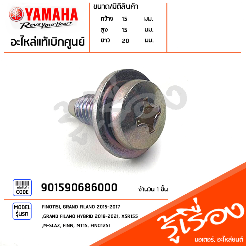 901590686000 สกรู พร้อมแหวนรอง น็อตพร้อมแหวน ยึดชุดสี แท้เบิกศูนย์ YAMAHA FINO115I, GRAND FILANO 2015-2021