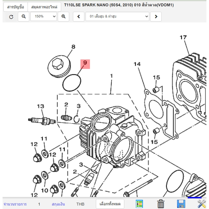 9321044889 โอริงฝาครอบตั้งวาล์ว YAMAHA X-1 Nouvo Fino Mio Filano Fiore Spark แท้ศูนย์ 93210-44889