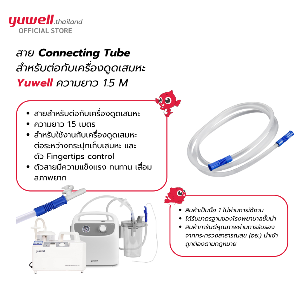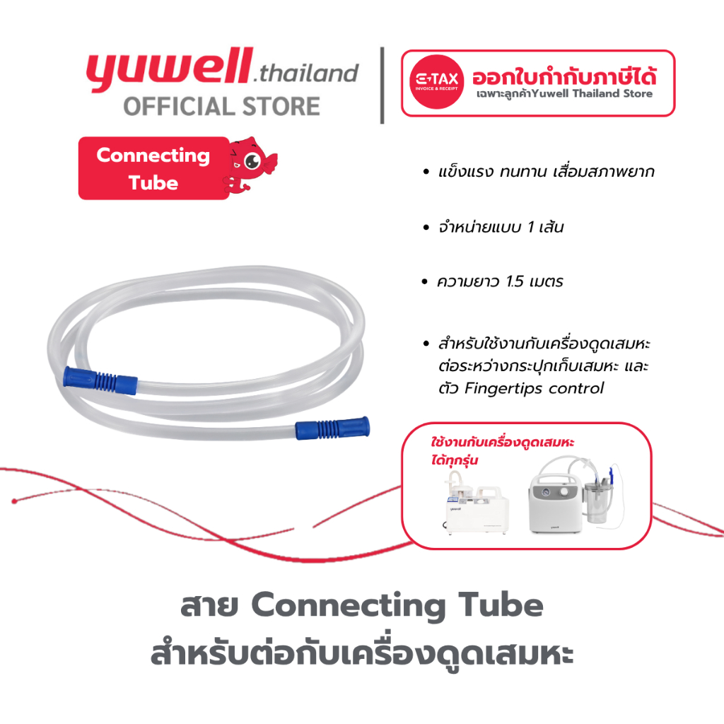 สาย Connecting Tube สำหรับต่อเครื่องดุดเสมหะ Yuwell ความยาว 1.5 M.