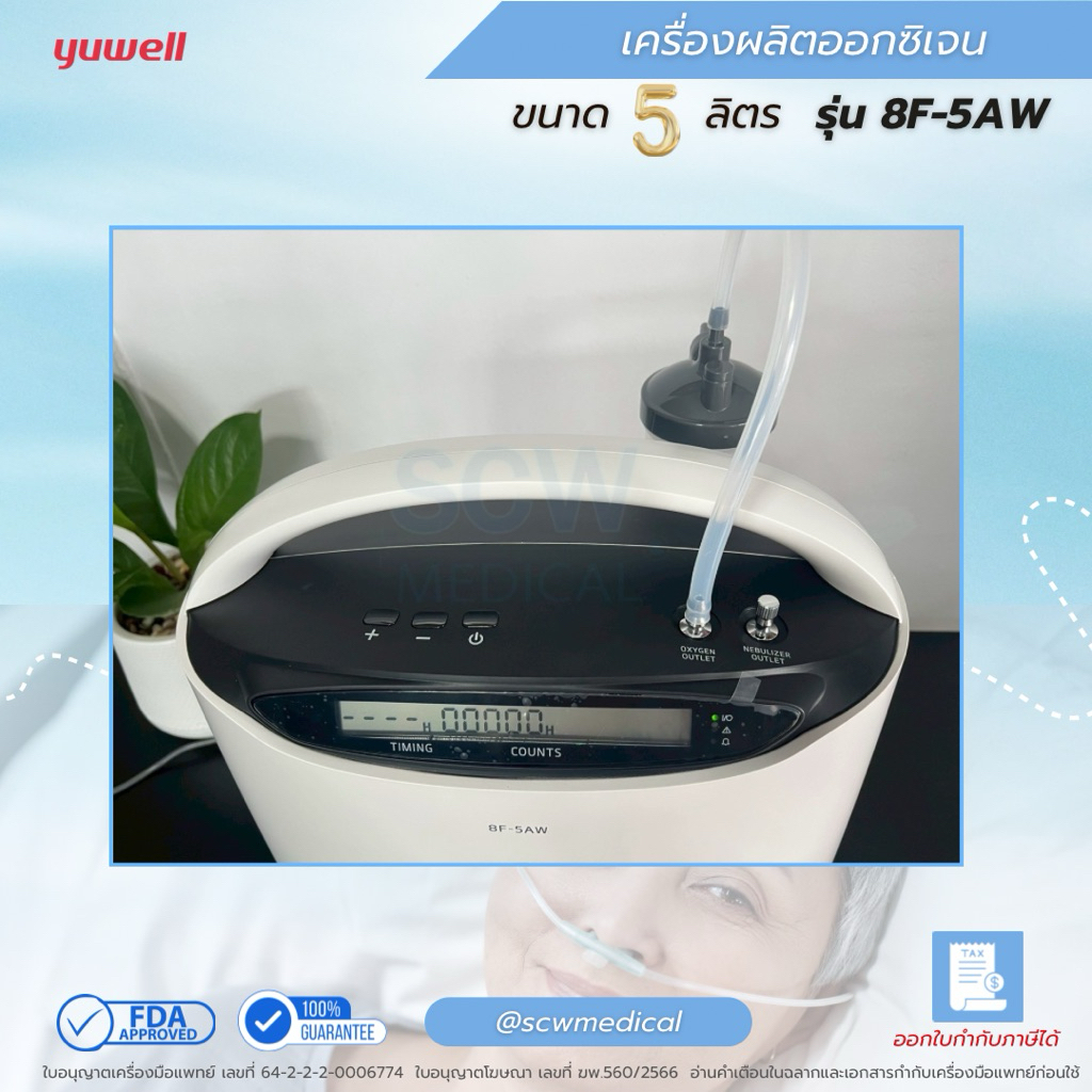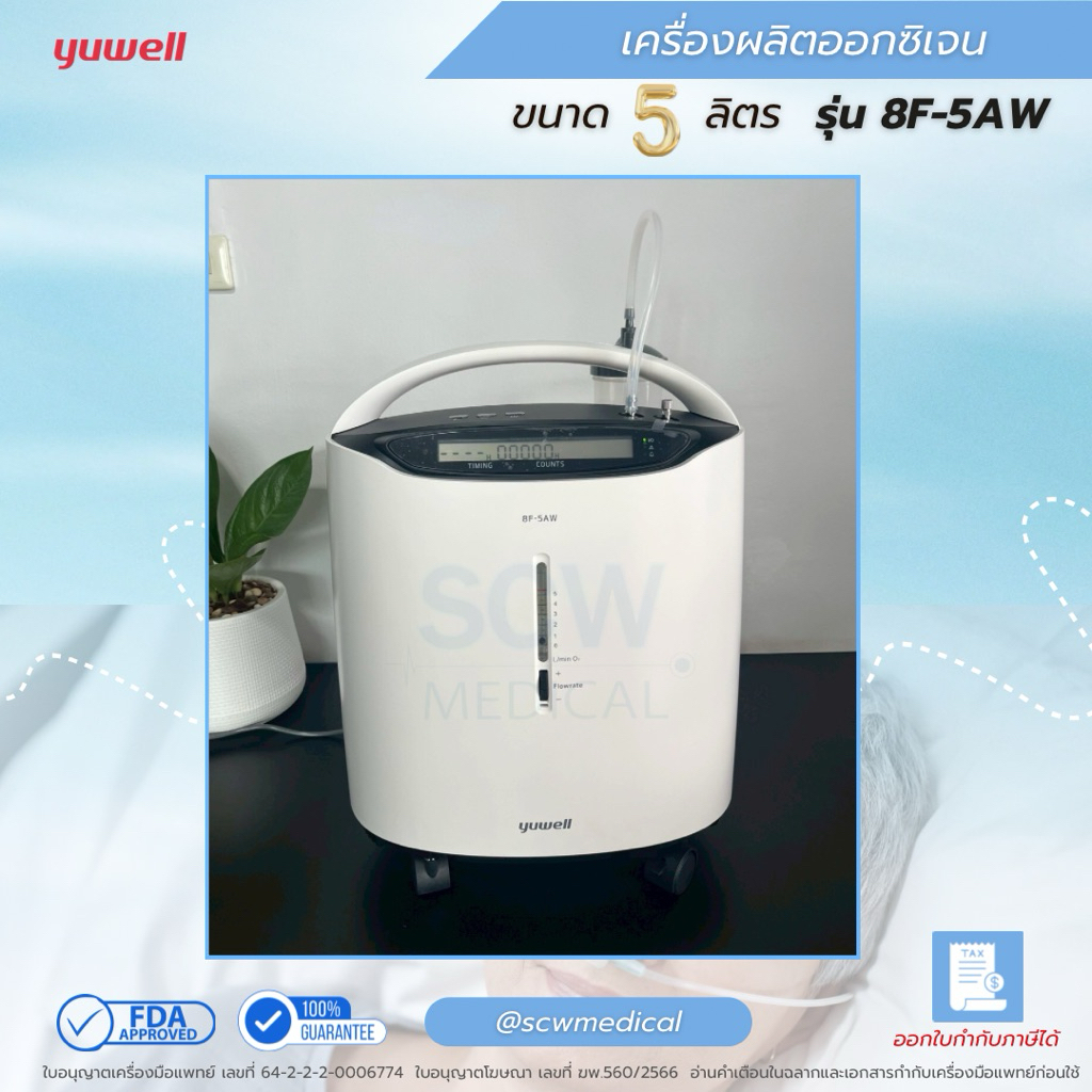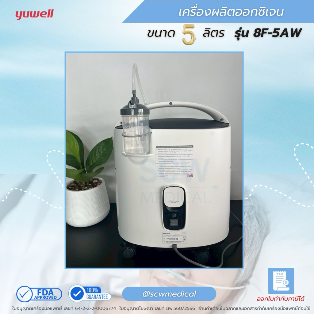 Yuwell เครื่องผลิตออกซิเจน 5 ลิตร รุ่น 8F-5AW พ่นยาได้ แถมไส้กรองเพิ่ม 2 ชิ้น รับประกันศูนย์ไทย 1 ปี