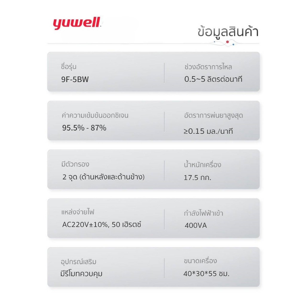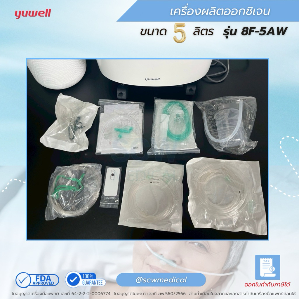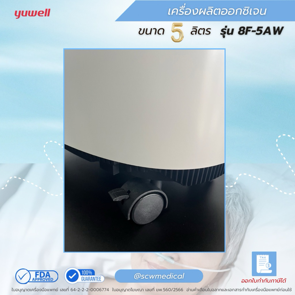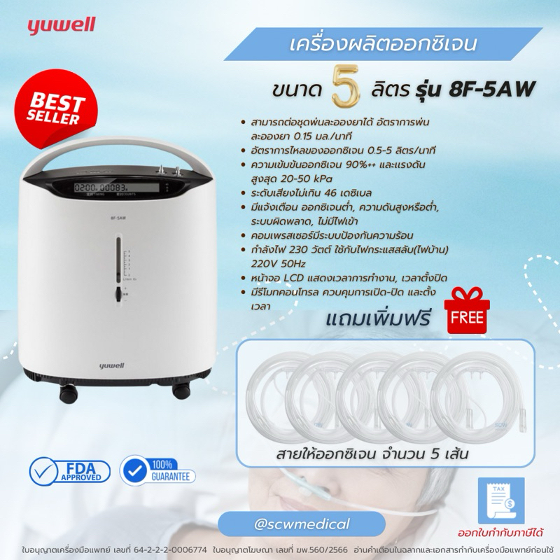 Yuwell เครื่องผลิตออกซิเจน 5 ลิตร รุ่น 8F-5AW พ่นยาได้ แถมไส้กรองเพิ่ม 2 ชิ้น รับประกันศูนย์ไทย 1 ปี