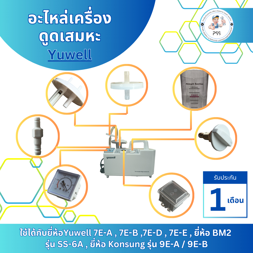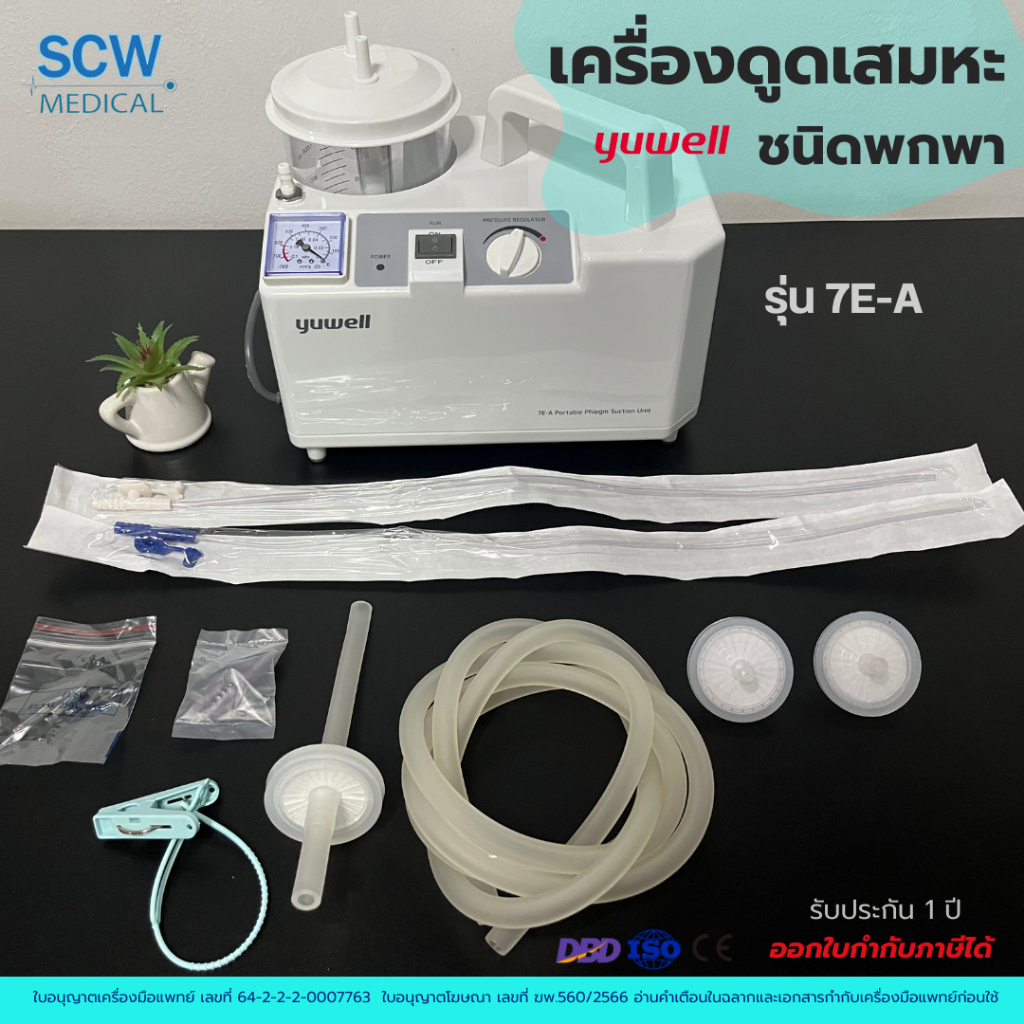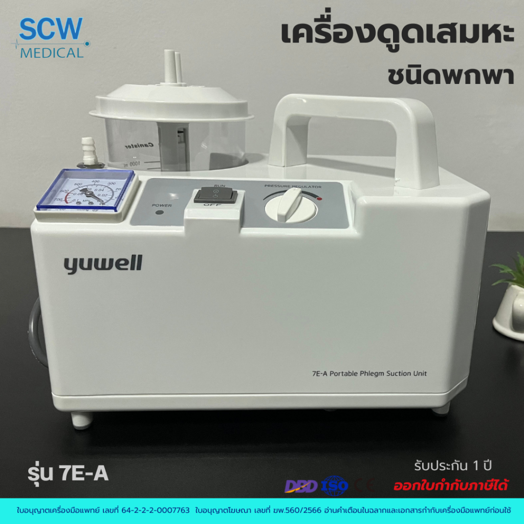 เครื่องดูดเสมหะ (Suction) แบบพกพา ยี่ห้อ Yuwell รุ่น 7E-A รับประกันศูนย์ไทย 1 ปี