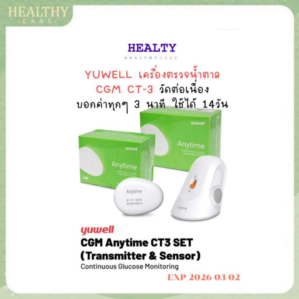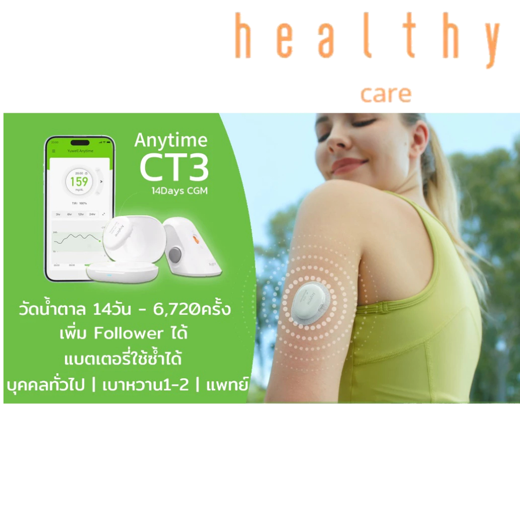YUWELLเครื่องตรวจน้ำตาลCGM CT-3วัดต่อเนื่อง ใช้ได้14วัน เทียบเท่าการเจาะเลือด 6720ครั้ง