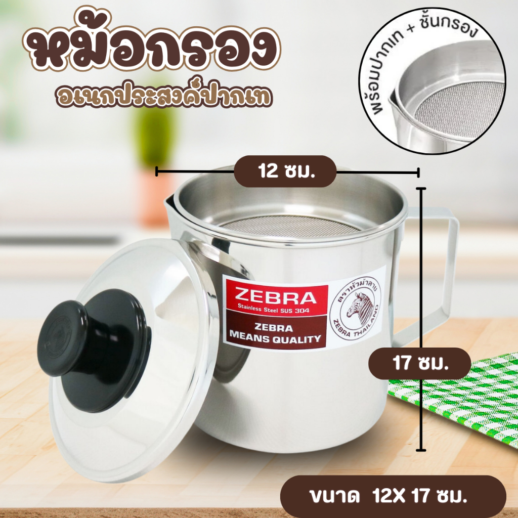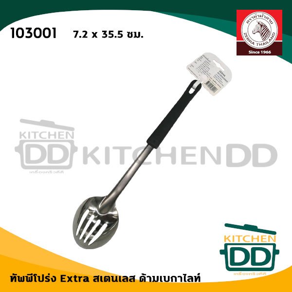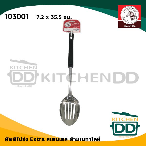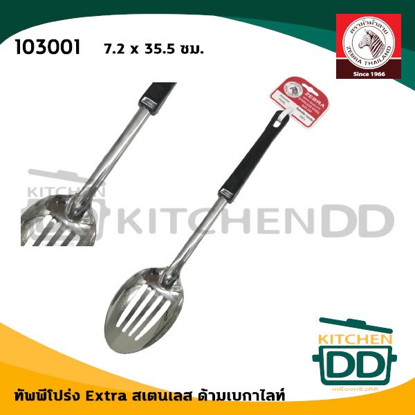 ทัพพีโปร่ง Extra ด้ามเบกาไลท์ กว้าง 7.2 ซม. ยาว 35.5 ซม. สเตนเลส Zebra หัวม้าลาย 103001 – 1 อัน