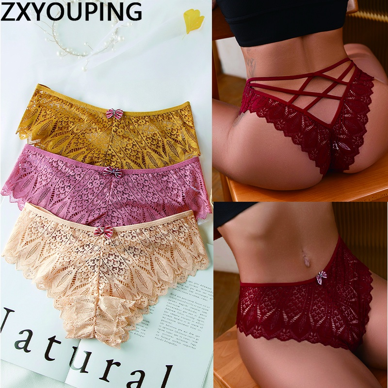 Zxyouping กางเกงชั้นในเซ็กซี่ลูกไม้สําหรับผู้หญิง Bow Cross เข็มขัดกางเกงชั้นในลูกไม้เซ็กซี่กลางเอวชุดชั้นในไร้รอยต่อชุดชั้นใน S-XL