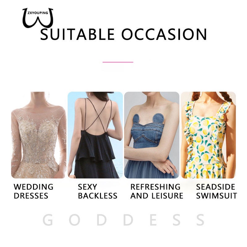 Zxyouping ชุดชั้นในสตรี กาว / ซิลิโคน มองไม่เห็น บรา / เซ็กซี่ มีกาวในตัว ไร้รอยต่อ ชุดชั้นใน / ใช้ซ้ําได้ เทปปิดหัวนม ที่ไม่มีสายหนัง ดันขึ้น ใต้อก