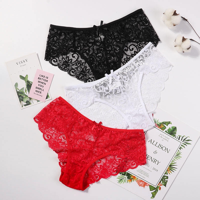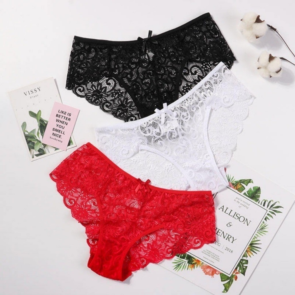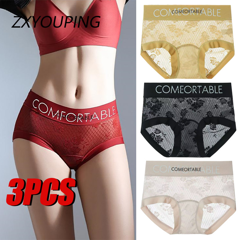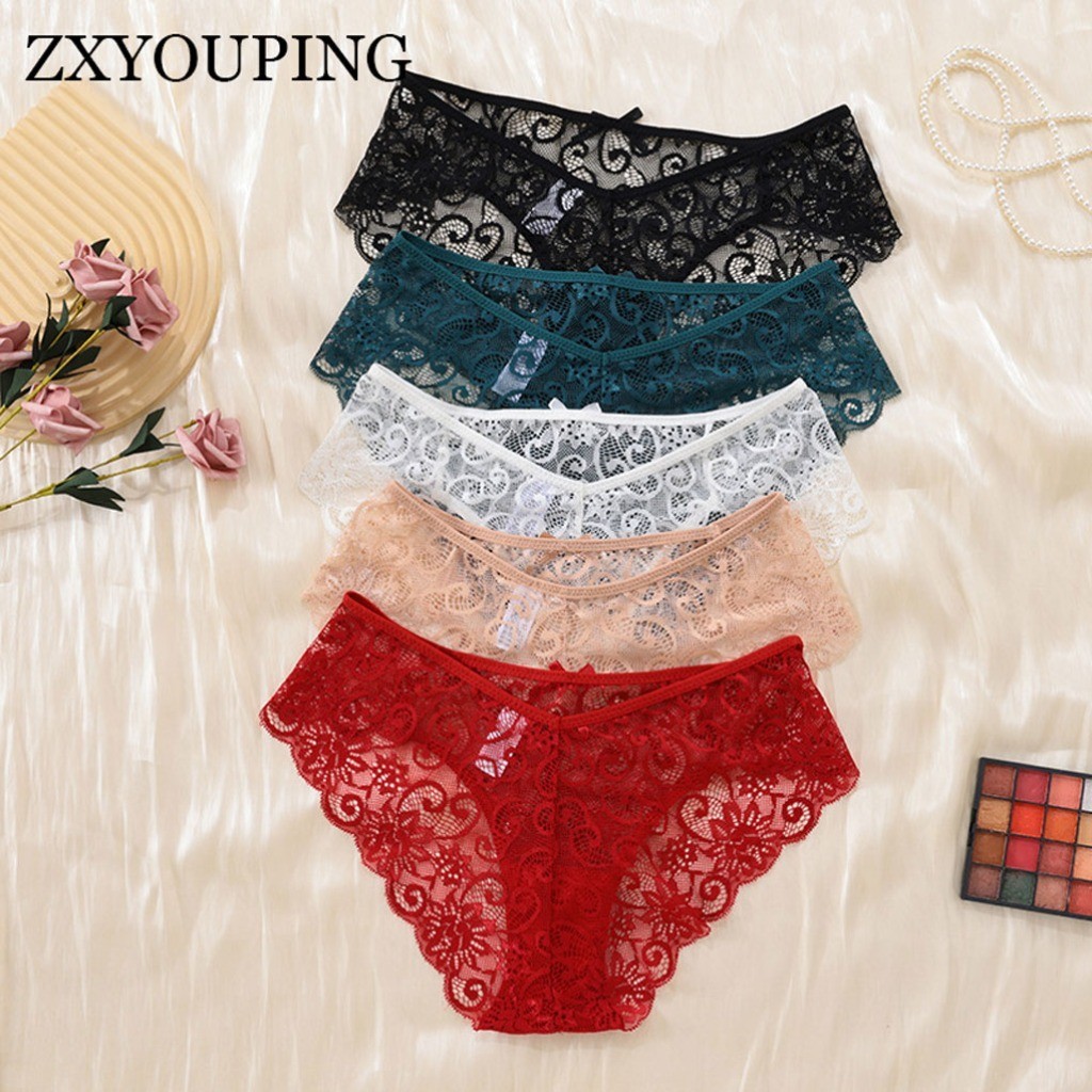 Zxyouping 3 ชิ้น ผู้หญิง เซ็กซี่ กางเกงชั้นใน ลูกไม้ ดอกไม้ มุมมอง ชุดชั้นใน สีพื้น ชุดชั้นใน กางเกงใน กางเกงขาสั้น หญิง เอววี ชุดชั้นในนุ่ม