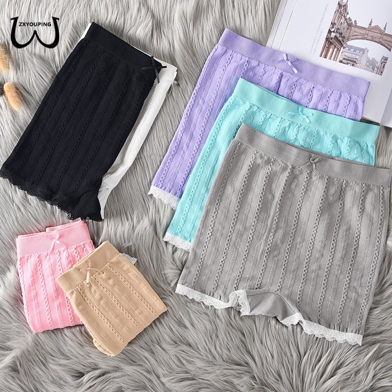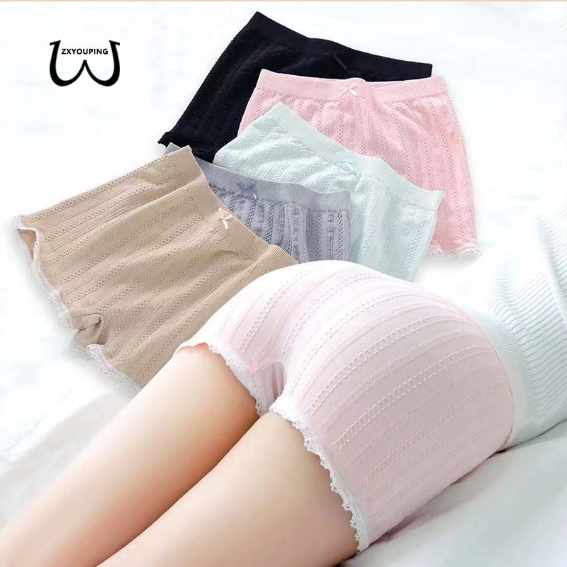 Zxyouping กางเกงชั้นใน กางเกงบ็อกเซอร์ ผ้าฝ้าย เอวกลาง ไร้รอยต่อ ปักลายลูกไม้ ป้องกันการเดิน สําหรับผู้หญิง