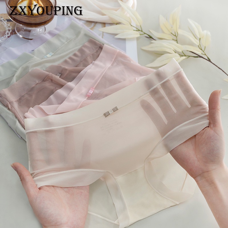 ZXYOUPING กางเกงชั้นใน ผ้าเรยอน เอวต่ํา ไร้รอยต่อ สําหรับผู้หญิง,ผ้าซีทรู กางเกงในหญิง M-XL